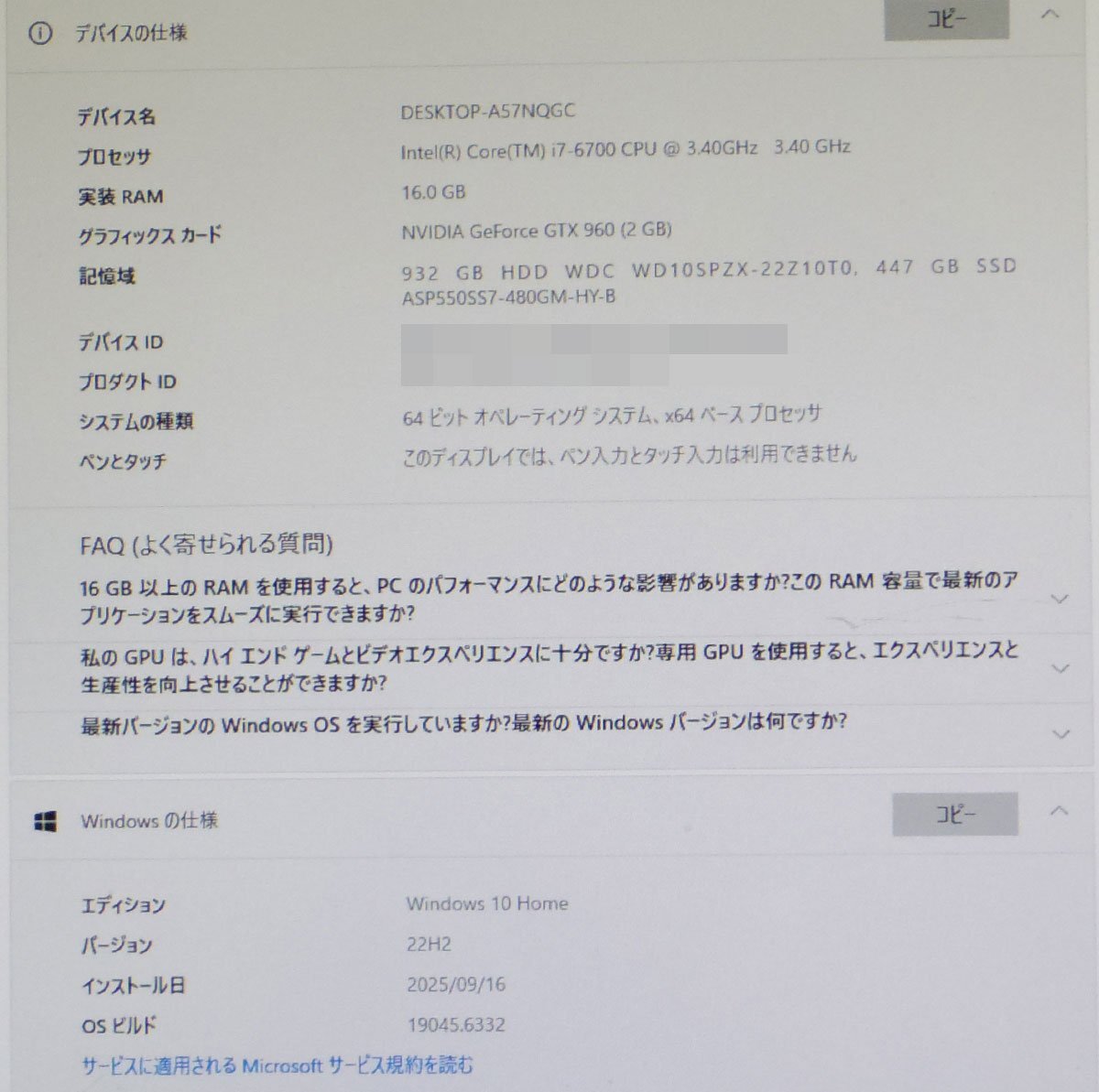 | インターフェース | ・USB3.0×4 2.0×4 ・DVI端子 ・HDMI端子 ・DisplayPort ・有線LAN |