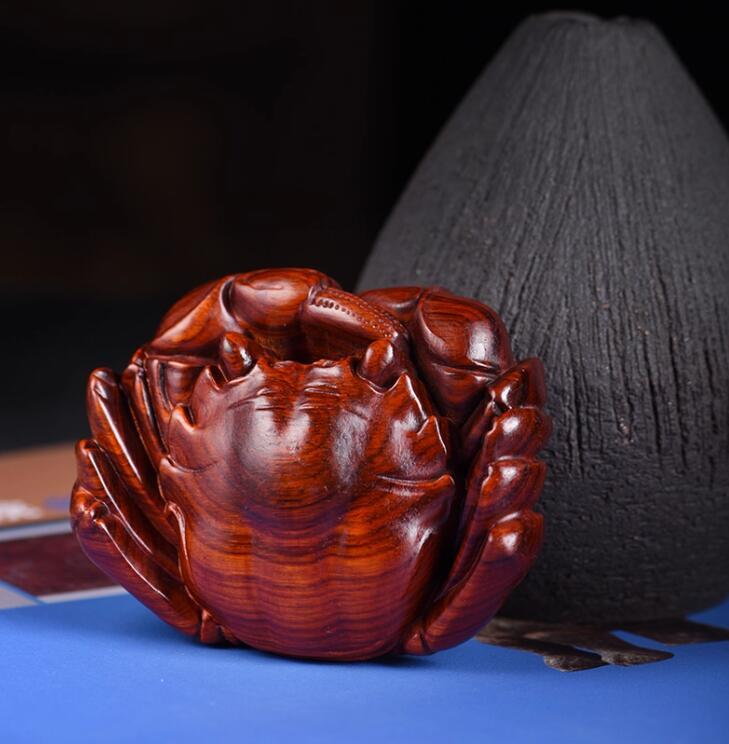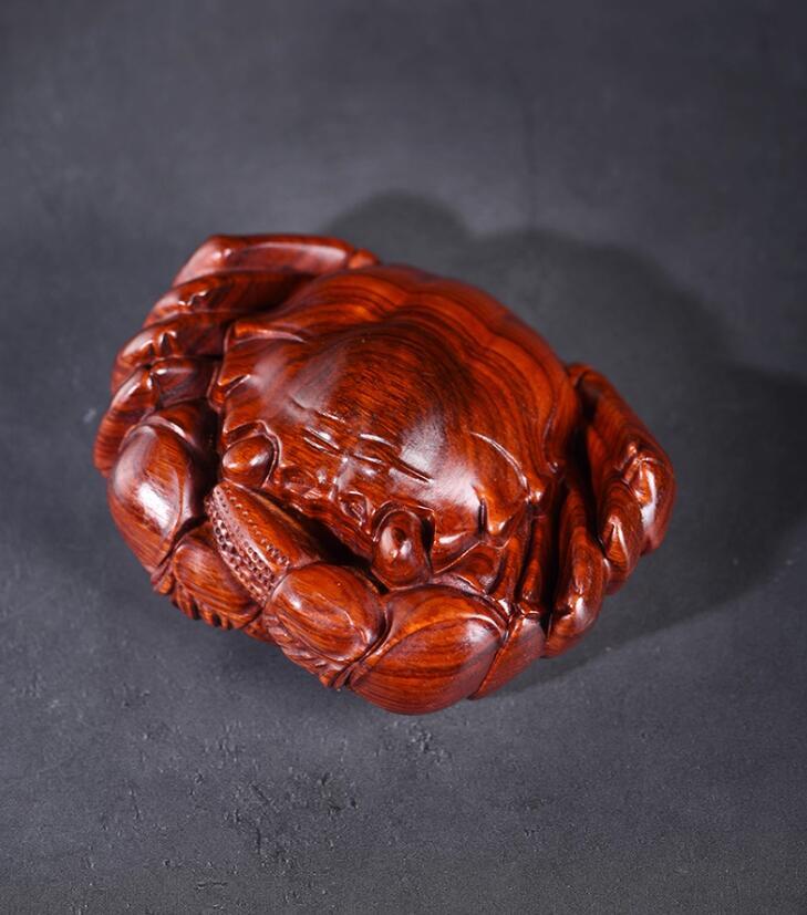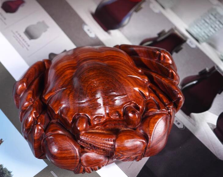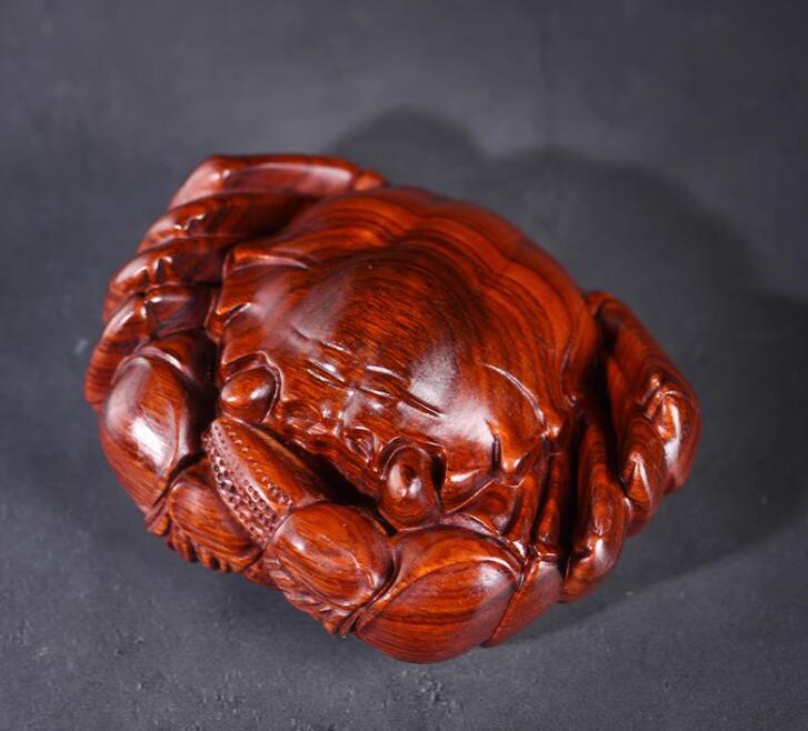 新入荷紫檀木工芸品木彫手作り木製 彫刻/置物 【極上の木彫】かに招財開運鎮宅辟邪