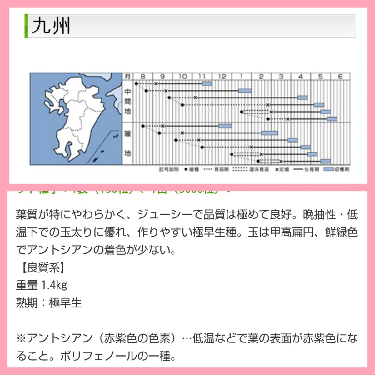 葉質が特にやわらかく、ジューシーで品質は極めて良好。 晩抽性・低温下での玉太りに優れ、作りやすい極早生種。 玉は甲高扁円、鮮緑色でアントシアンの着色が少ない。