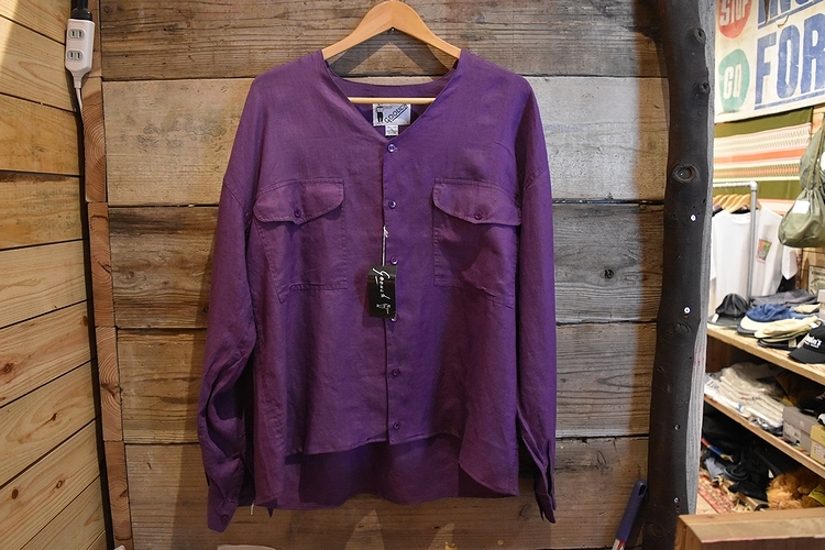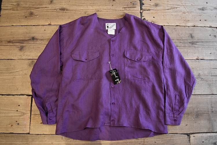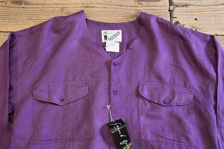 90年代頃のデッドストック品、GOOUCH2ポケットノーカラーオールリネン長袖シャツになります。