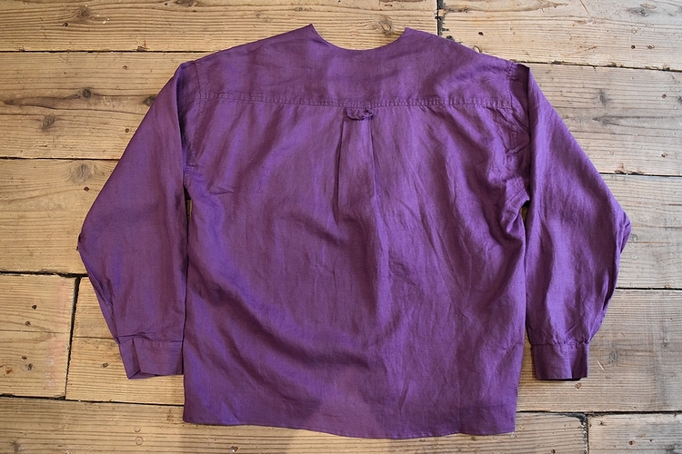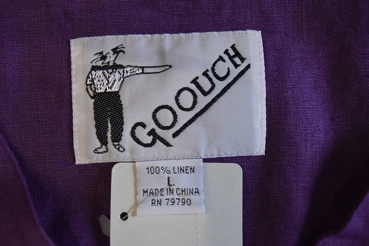 デッドストック◎90sビンテージGOOUCHグーチ2ポケットノーカラーオールリネン長袖シャツLパープル紫アメカジストリート t1011