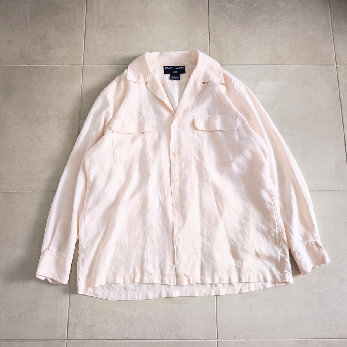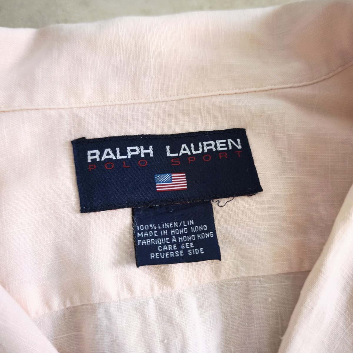 90s POLOSPORTS ラルフローレン オープンカラーシャツ ピンク リネン