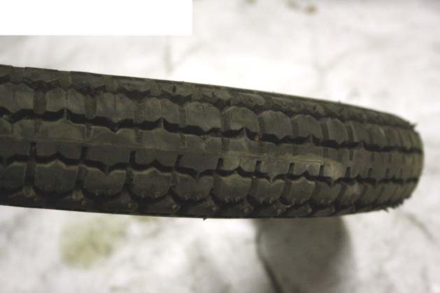 稀少な 60s当時のフロント用の、タテ溝のパターンタイヤです。