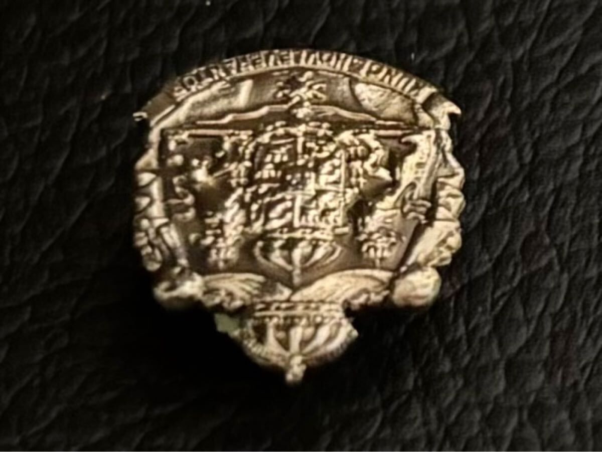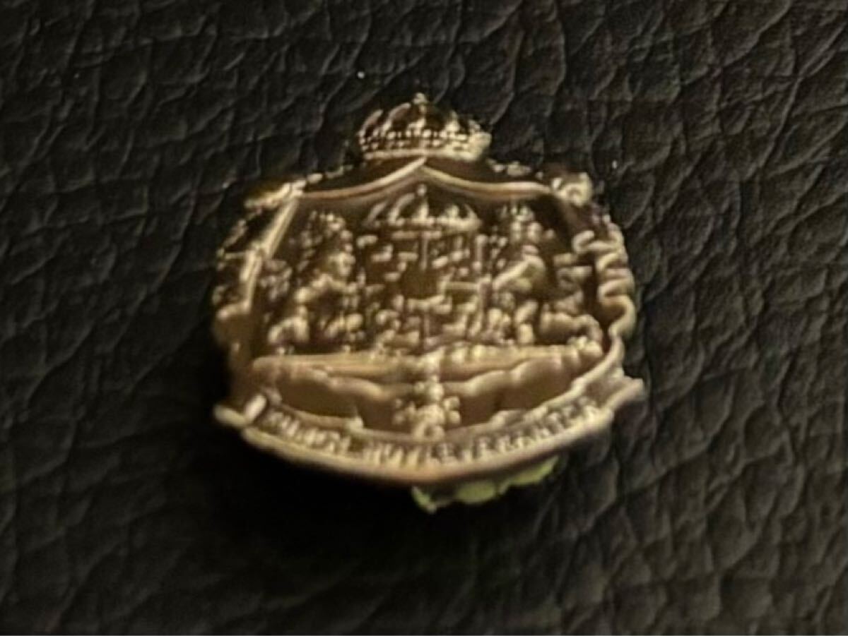 アブ 初期・純正の穴間12mmの真鍮製ラージクレストマーク/ブロンズエンブレムでニッケルメッキ+24Kの金メッキ処理が施されたカスタム品です。