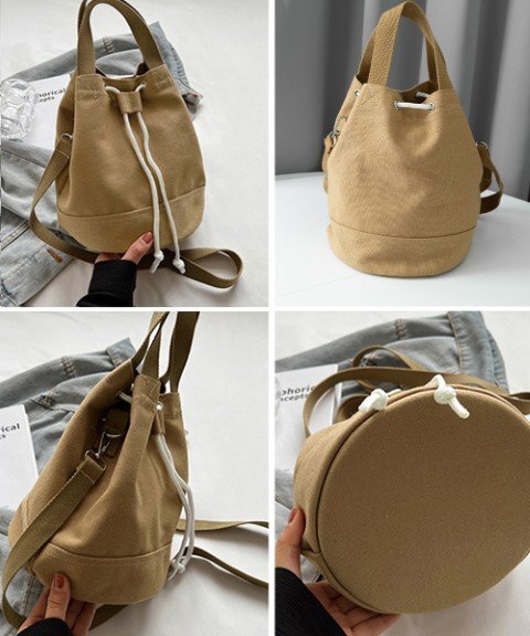 3wayバケツバッグ キャンバスバッグ 斜め掛けバッグ 使いやすいドローストリングバッグ 手提げバッグ 肩掛け鞄通勤通学