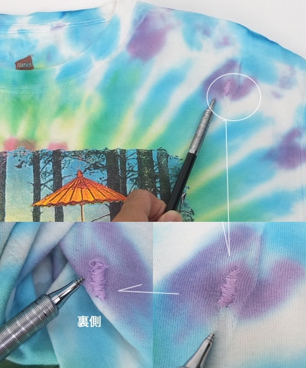 右肩に太い糸の束でリペア施されています。(画像参照)