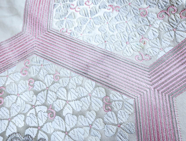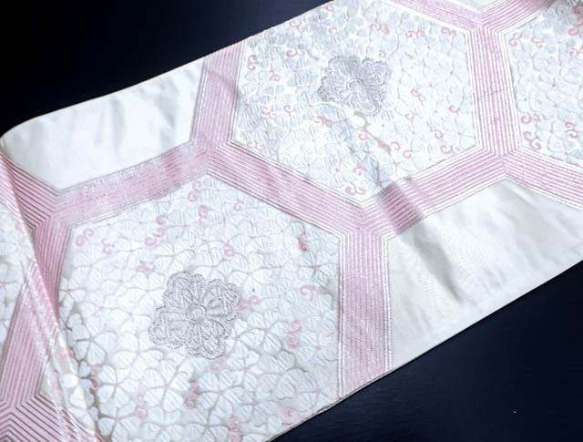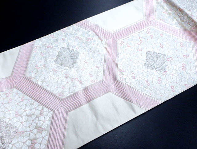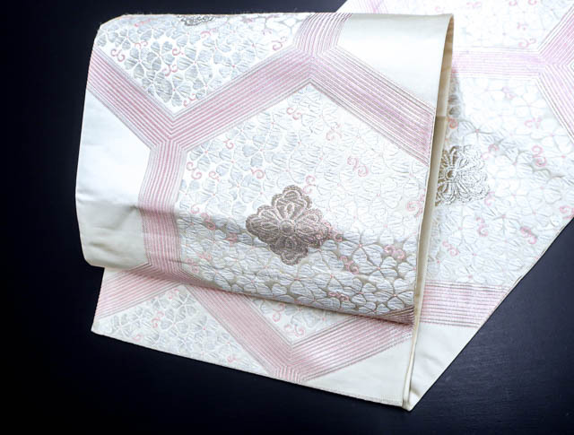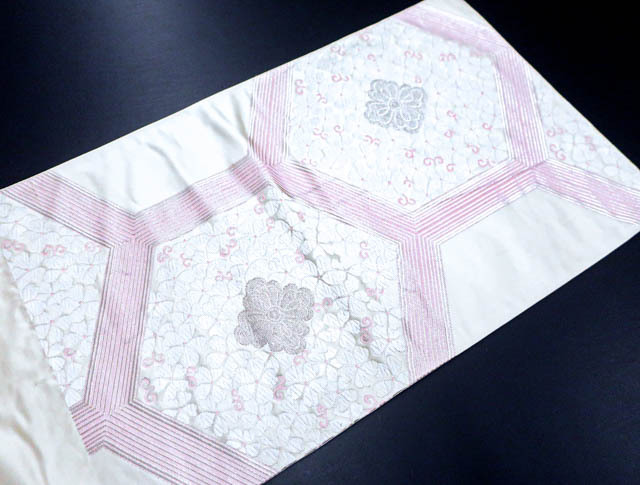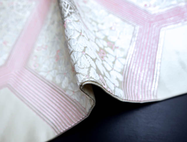 リサイクル商品のため無地場に点汚れ、折れ山汚れ、前柄に薄汚れがございますがご着用頂けると存じます。 地色はアイボリーです。 1枚目の画像が近いお色かと思われます。 素材は正絹です。 |
