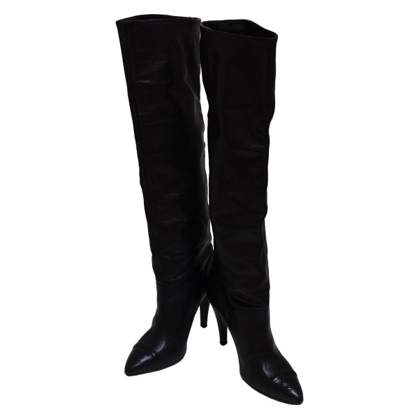 シャネル CHANEL ロングブーツ 36 1/2 G26862 - レザー 黒 レディース アウトソール張替済 靴