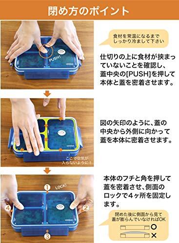 ・【汁漏れしにくい】一体型のパッキンと4点ロックで汁漏れを防止します! 本体の周囲と中仕切りをシーリングするWシーリング構造で、汁漏れを防止します。各スペースの汁移りも防ぐので、おかずなどの味移りも防止します。※本商品は密閉容器ではありませんので、水分の多い物や汁物は入れないでください。漏れの原因になります。