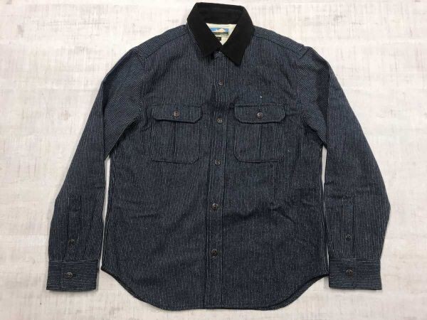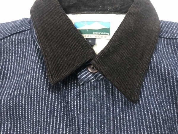グローバルワーク GLOBAL WORK アーバン レトロ アウトドア 起毛 ストライプ コーデュロイ襟 長袖 シャツ ジャケット メンズ L 紺 です。