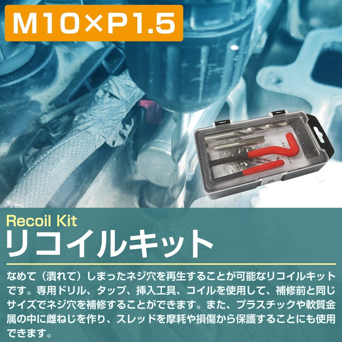 『M10×P1.5』リコイルキット ネジ 山 修正 ドリル付き めねじ 再生 ねじ 穴 修復 補強 耐久性向上 雌ネジ 補修 工具 セット