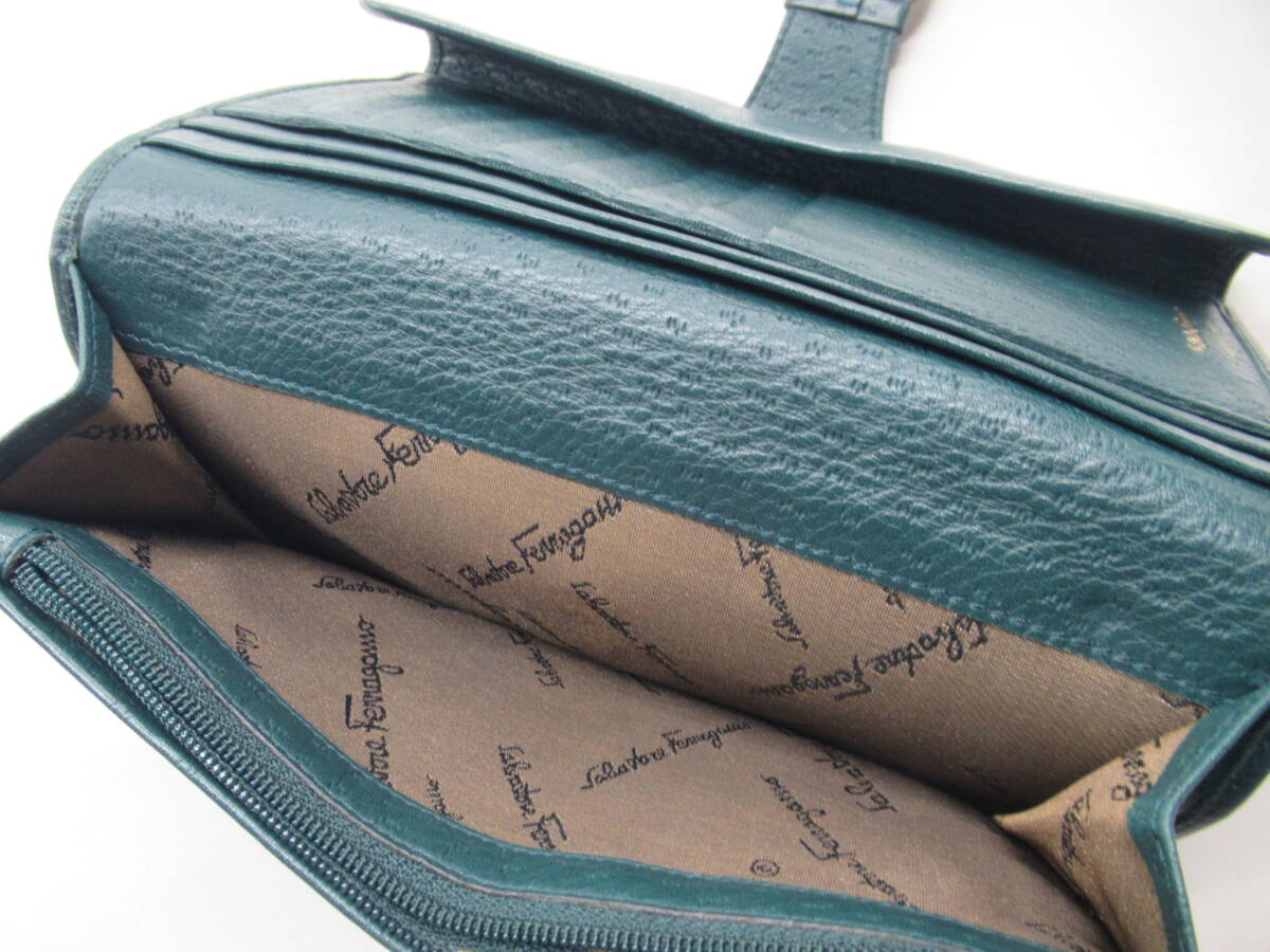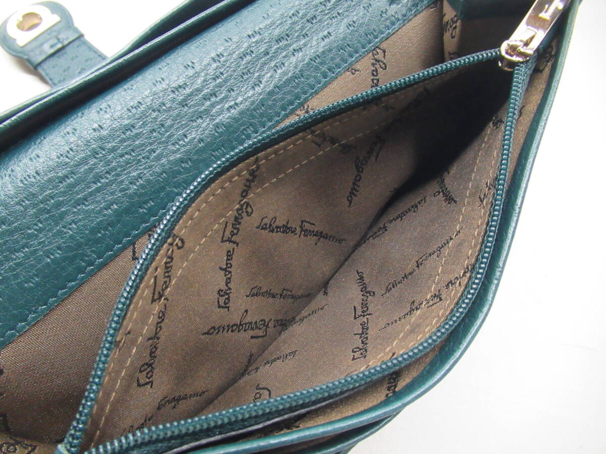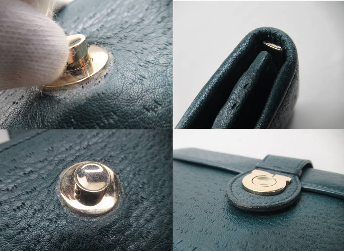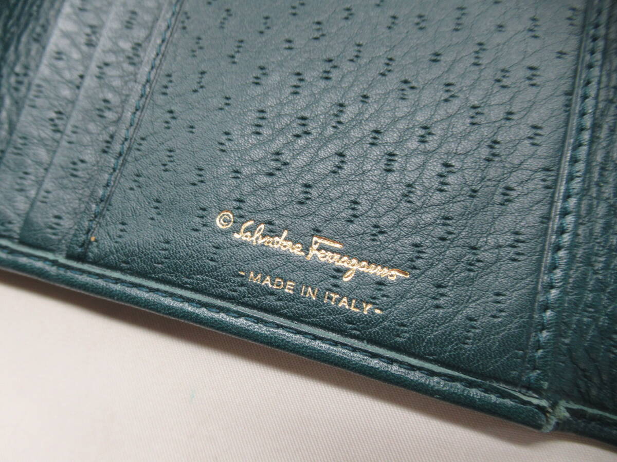 ★【B送900円】2418 Salvatore Ferragamo サルヴァトーレフェラガモ ガンチーニ 長財布 グリーン系 ゴールド金具 イタリア製
