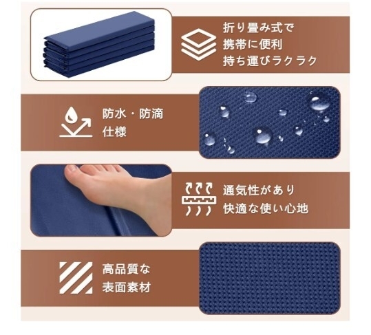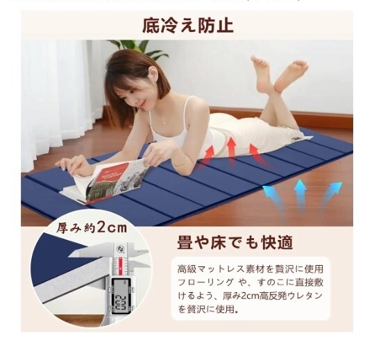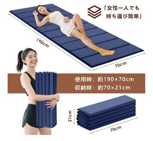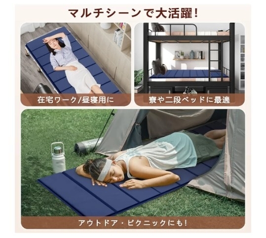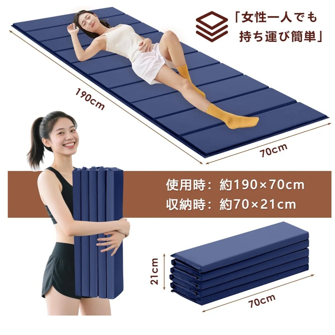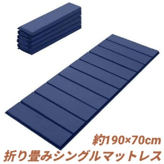 折りたたみシングルマットレス 600Dオックスフォードカバー 発泡ポリエチレンフォーム(EPE) 使用 軽量 コンパクト 省スペース収納 通気性 車中泊 来客用 約190×70cm (ネイビー)