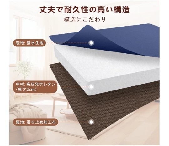 ふかふか寝心地:しっかりしたEPEフォームを採用し、床付き感が少なく快適な寝心地。車中泊や急な来客時にも、まるで普段使いのベッドのように眠れる心地よさです。