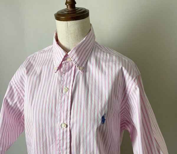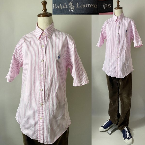★ビンテージ 半袖カスタム済 90s POLO RALPH LAUREN ポロ ラルフローレン CUSTOM FIT カスタムフィット コットン100 ストライプ シャツ S