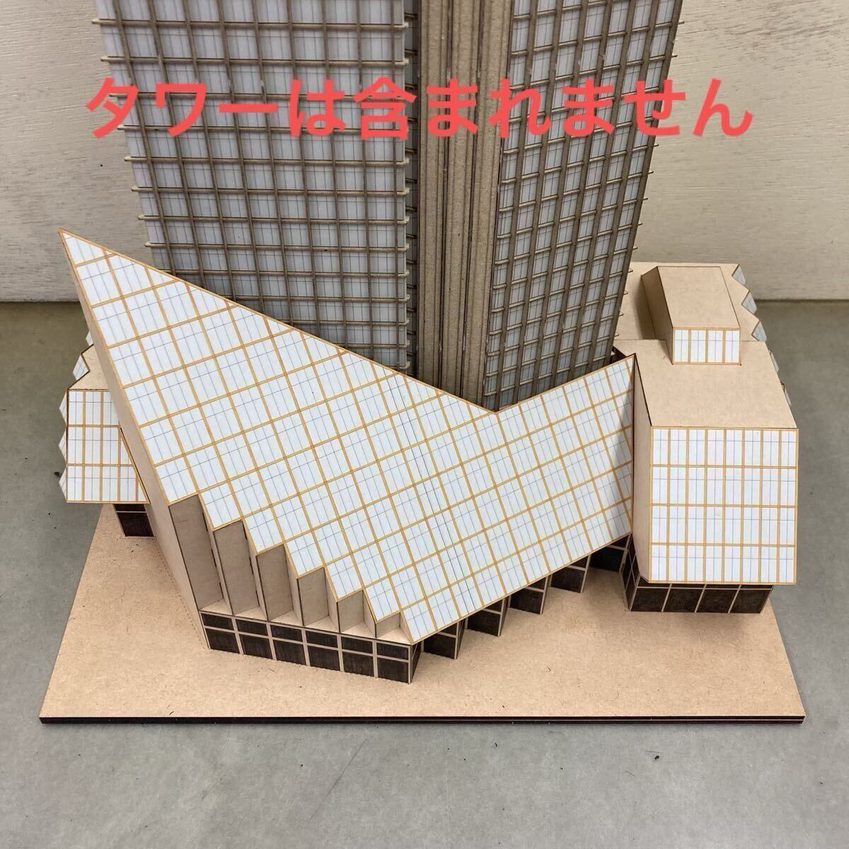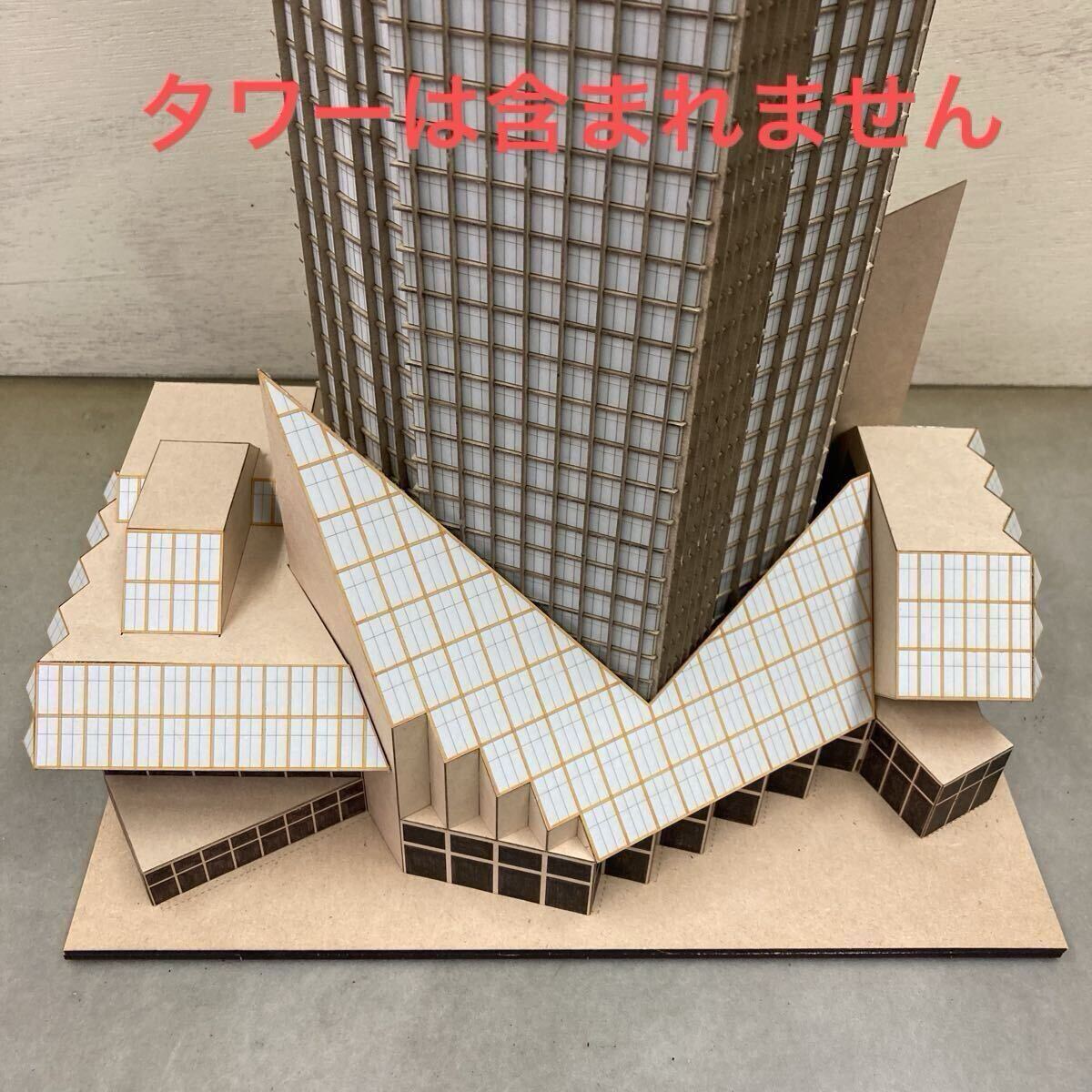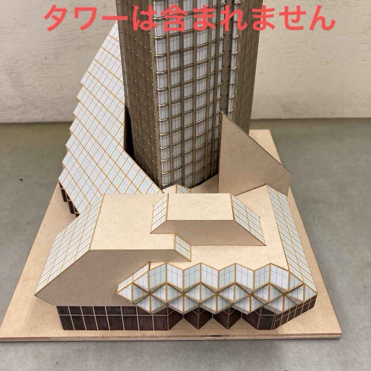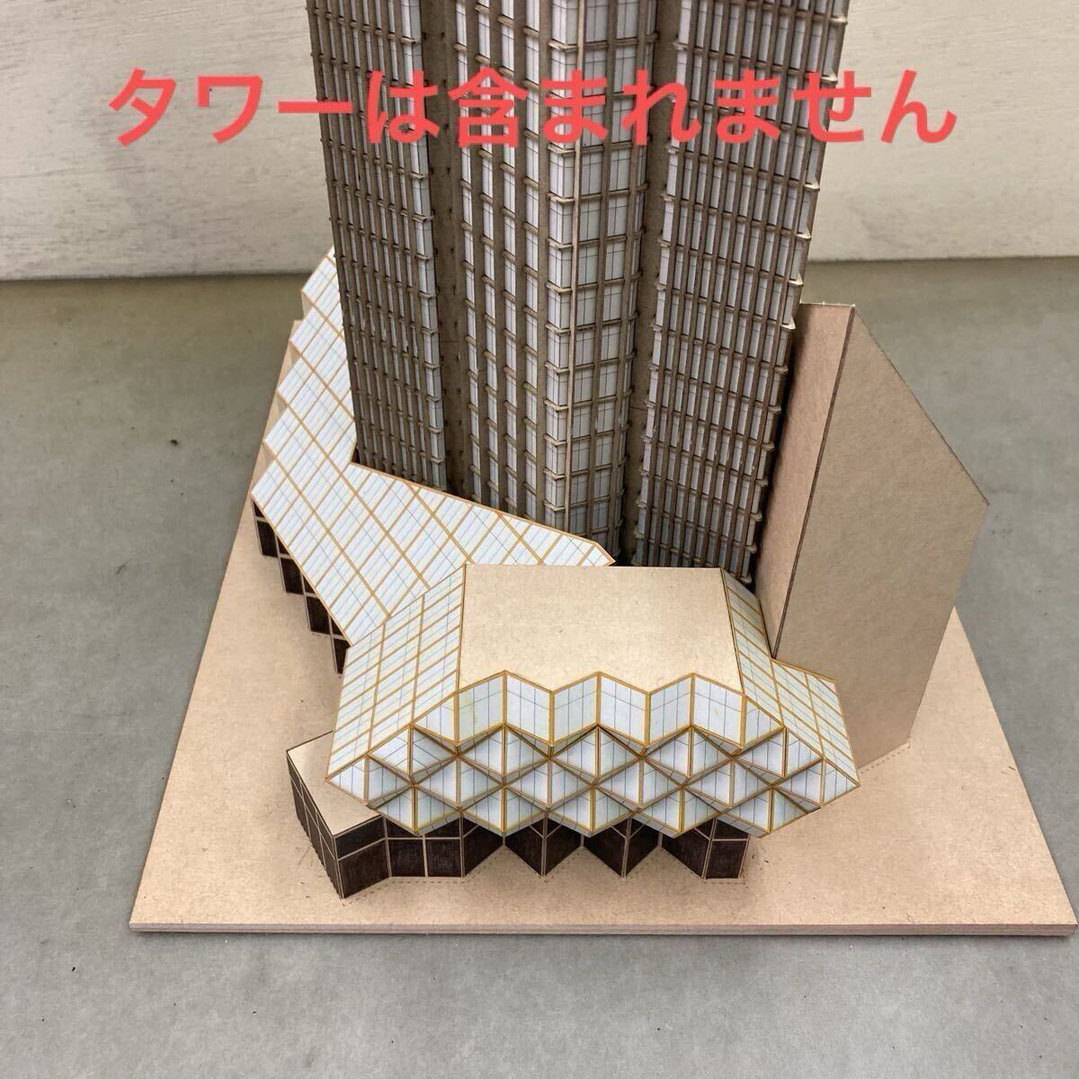 グラス・タワー (映画『タワーリング・インフェルノ』) のペーパーモデル (1/340, 底部のみ、ベージュ、灰色屋根、無塗装)