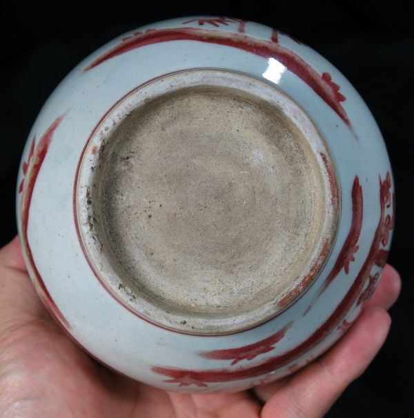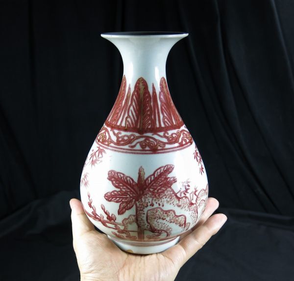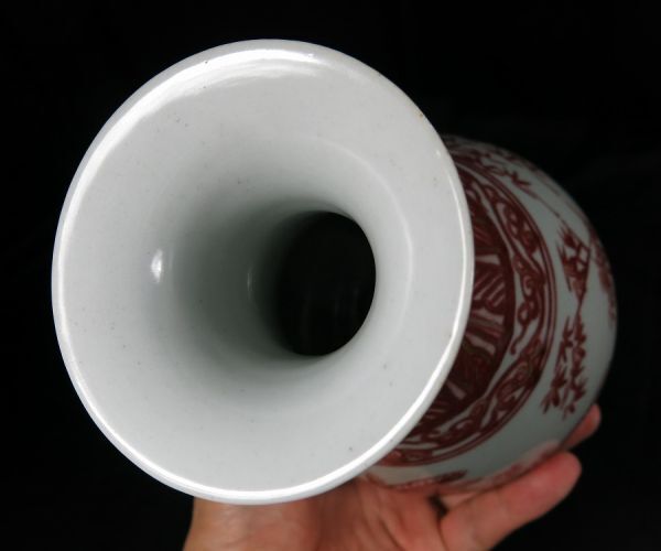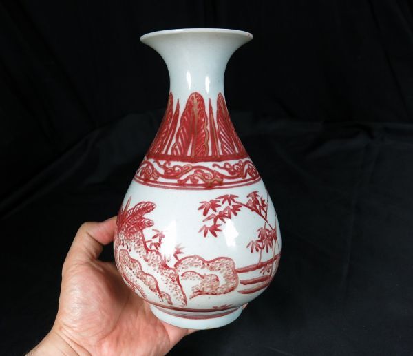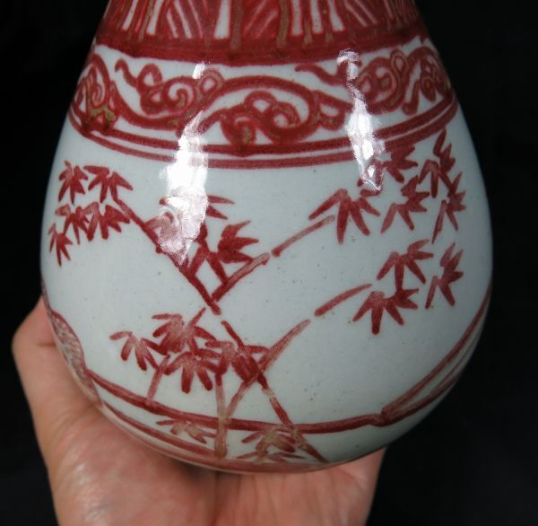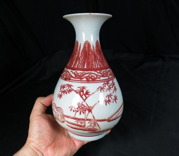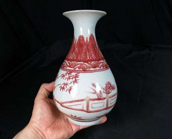 白磁辰砂宮庭図広口瓶  磁器 です。     コレクション整理での 出品です。
