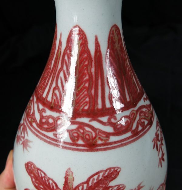 e 白磁辰砂宮庭図広口瓶 磁器 /新渡 釉裏紅 辰砂 色絵 豆彩 粉彩 白磁 染付 青花 呉須 青磁