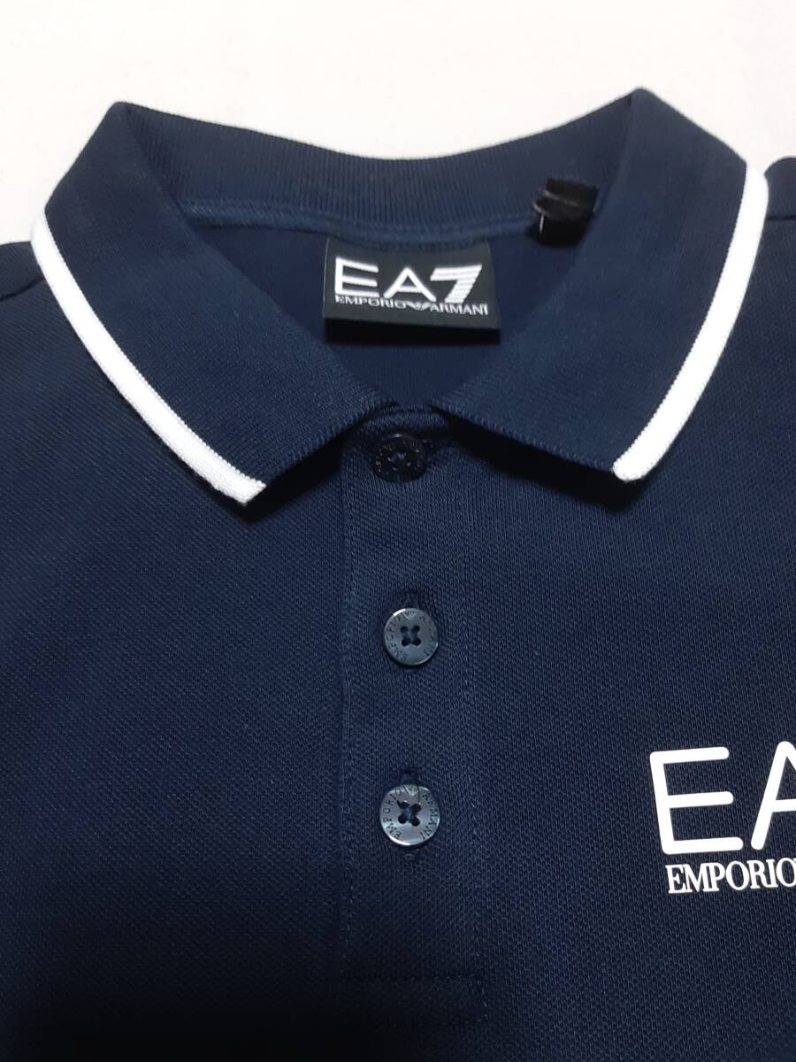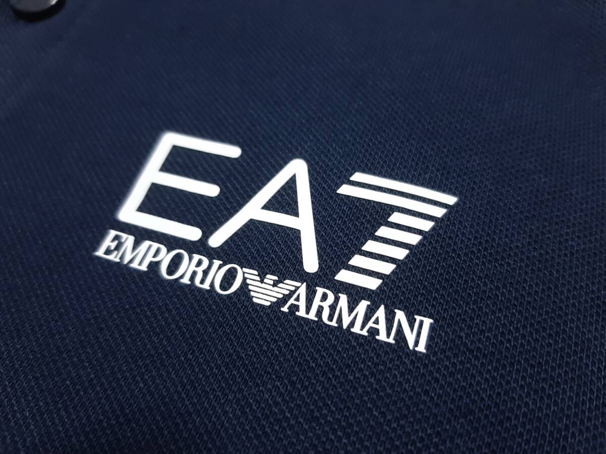 [新品] 8A(8歳) EA7 / ARMANI JUNIOR ワンポイントロゴ入り【鹿の子半袖ポロシャツ】◆2025年春夏モデル 男の子用 130cm ◆色:紺