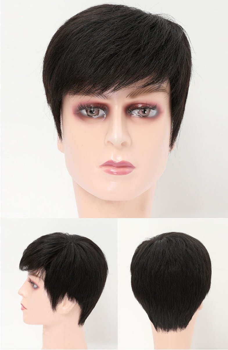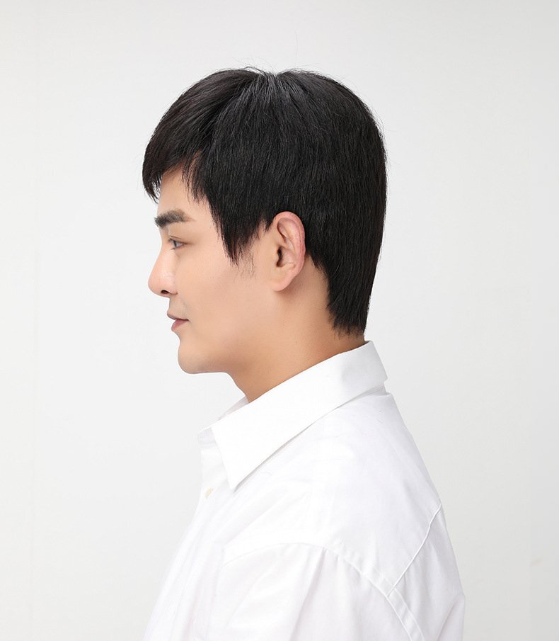 フルウィッグ メンズウィッグ かつら 男性用 ショート 脱毛症対策 人毛 カツラ つむじ 自然黒 普段使い 短髪 機植えつむじFREE(52-56cm)