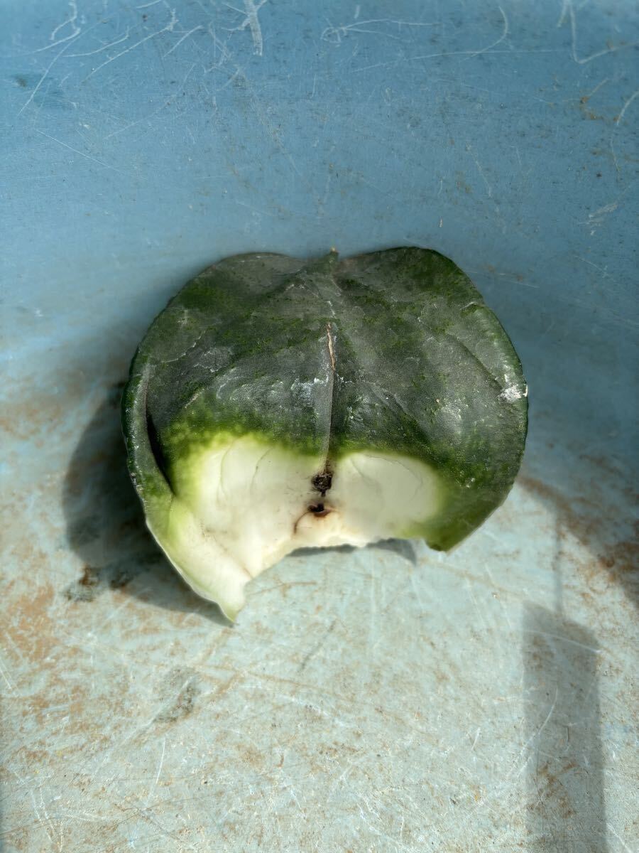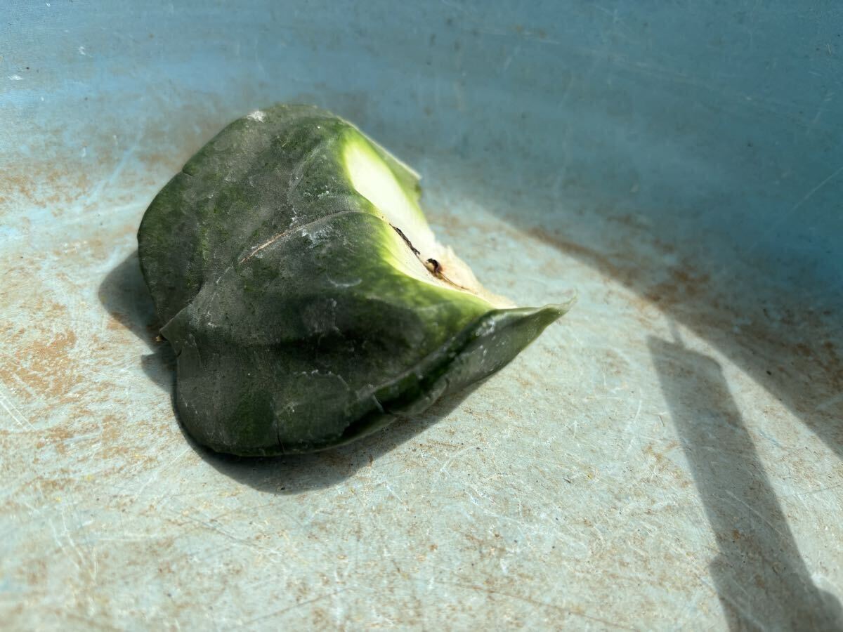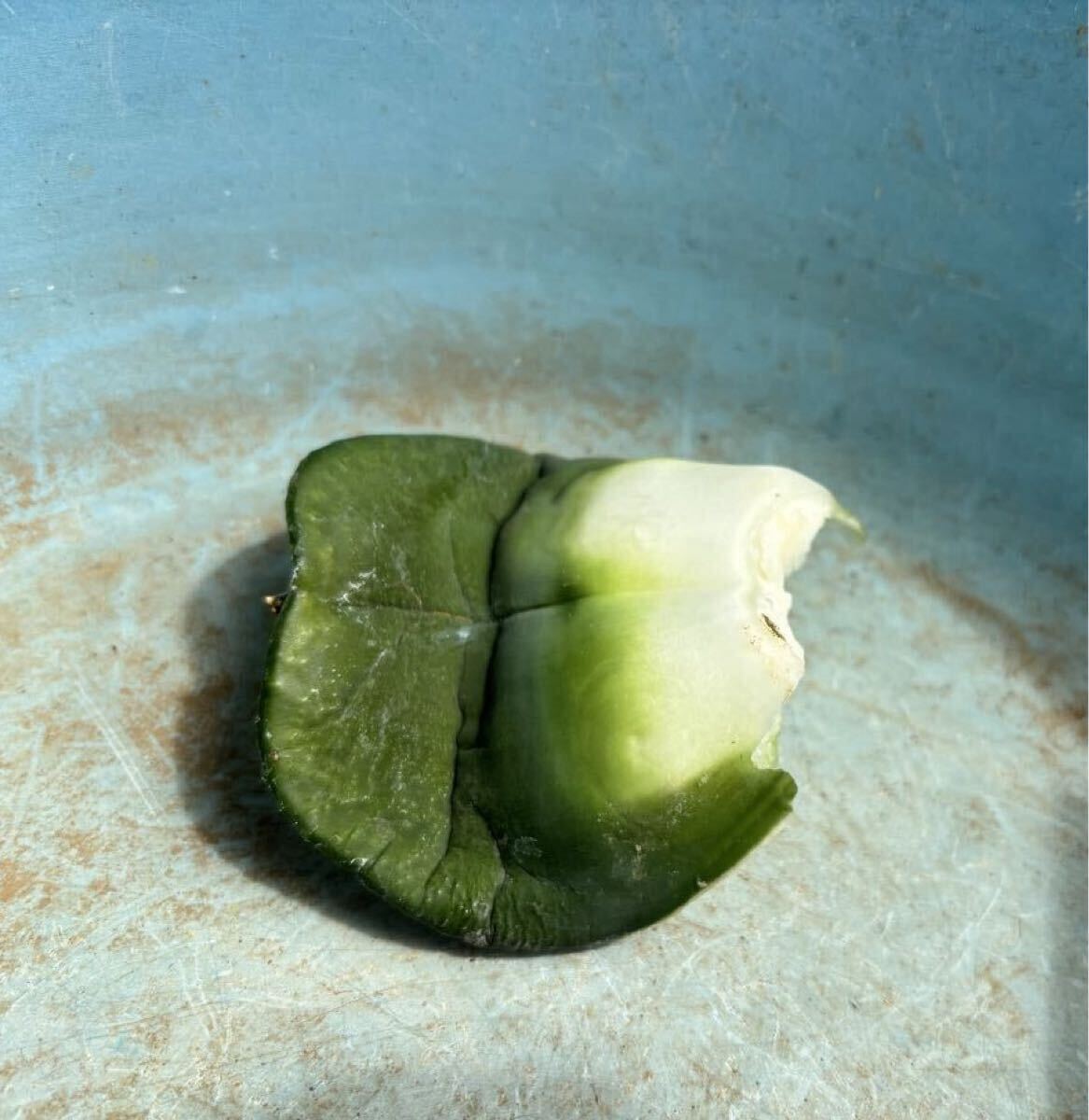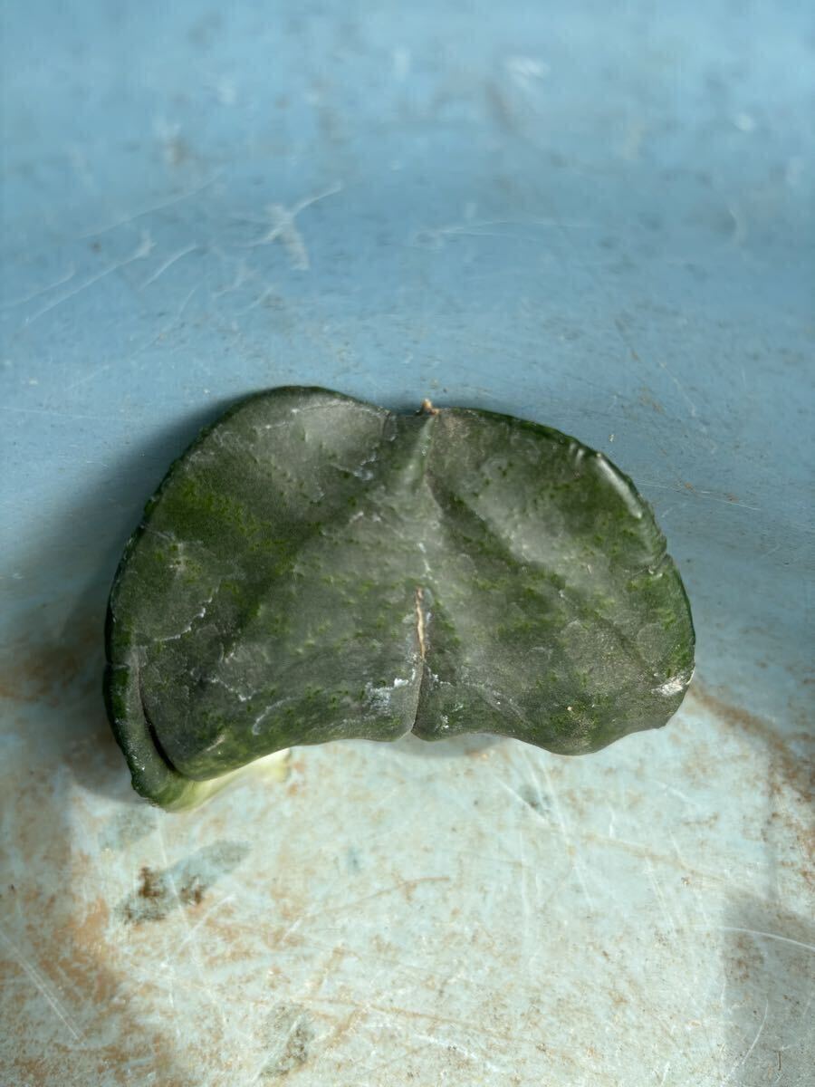 ガステリアの恐竜系交配種の銘品、カバ大王の標本株から取った下葉一枚です。画像の通り葉巾は8cmを超え、超ダルマ葉で大型肉厚葉という素晴らしい木です。