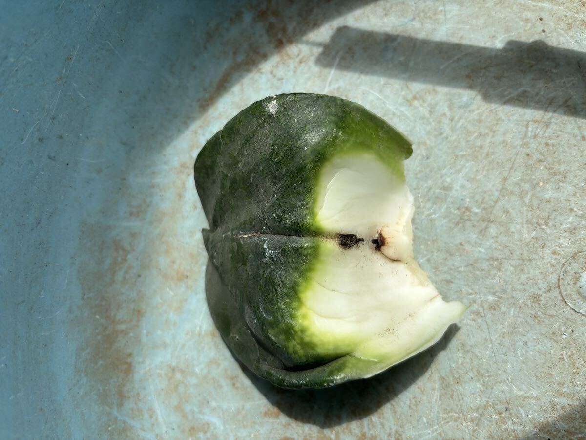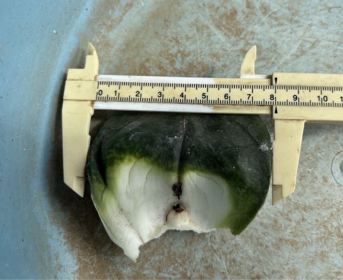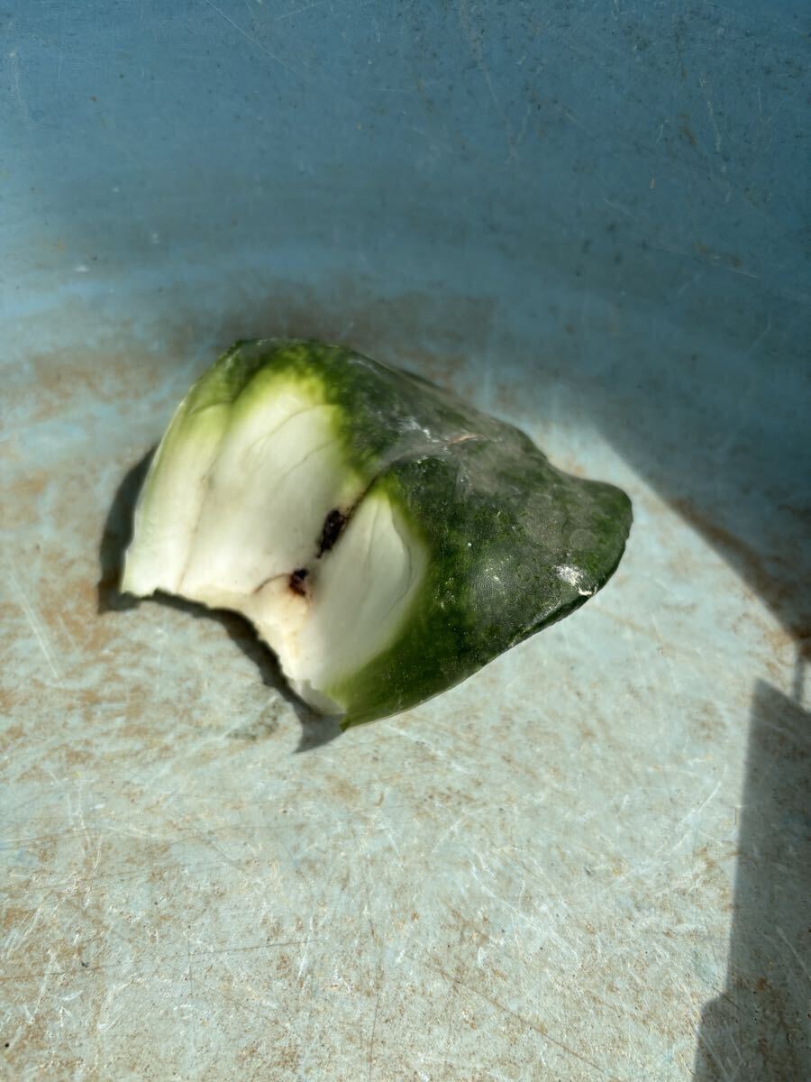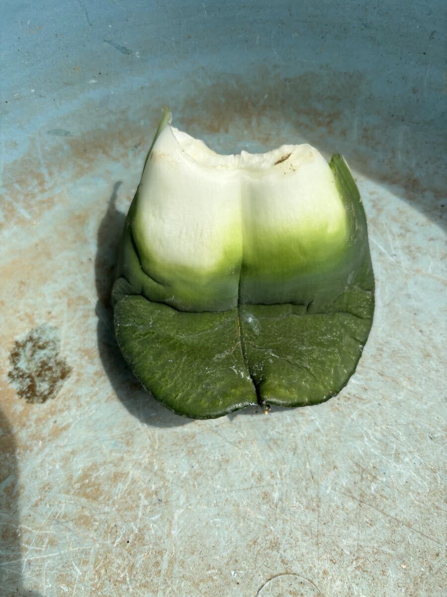 ガステリアの恐竜系交配種の銘品、カバ大王の標本株から取った下葉一枚です。画像の通り葉巾は8cmを超え、超ダルマ葉で大型肉厚葉という素晴らしい木です。