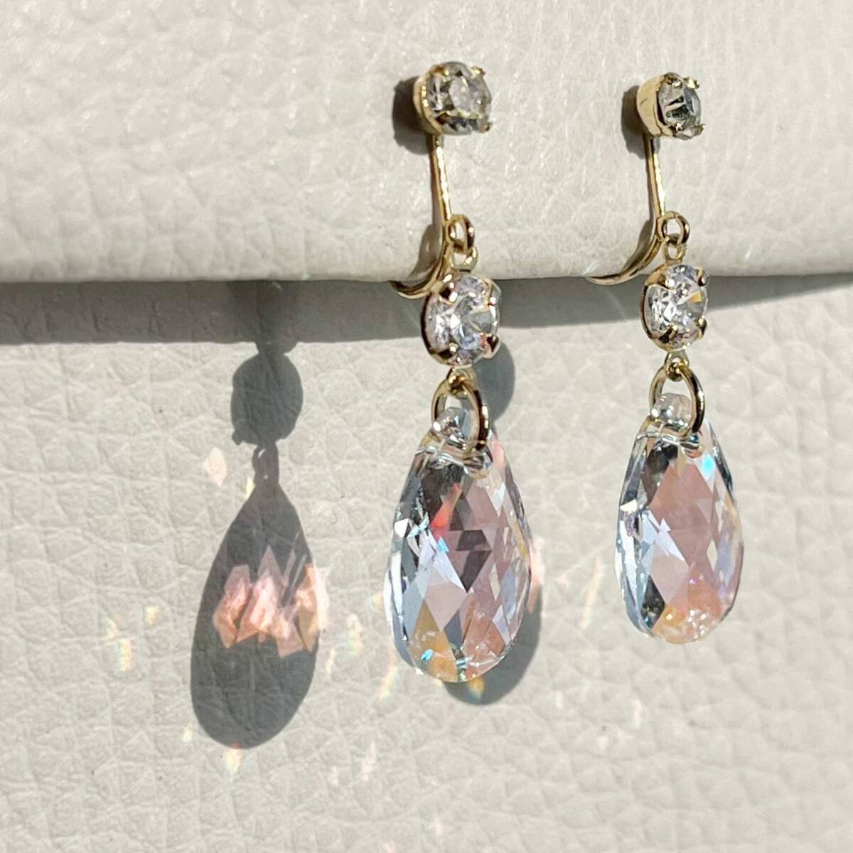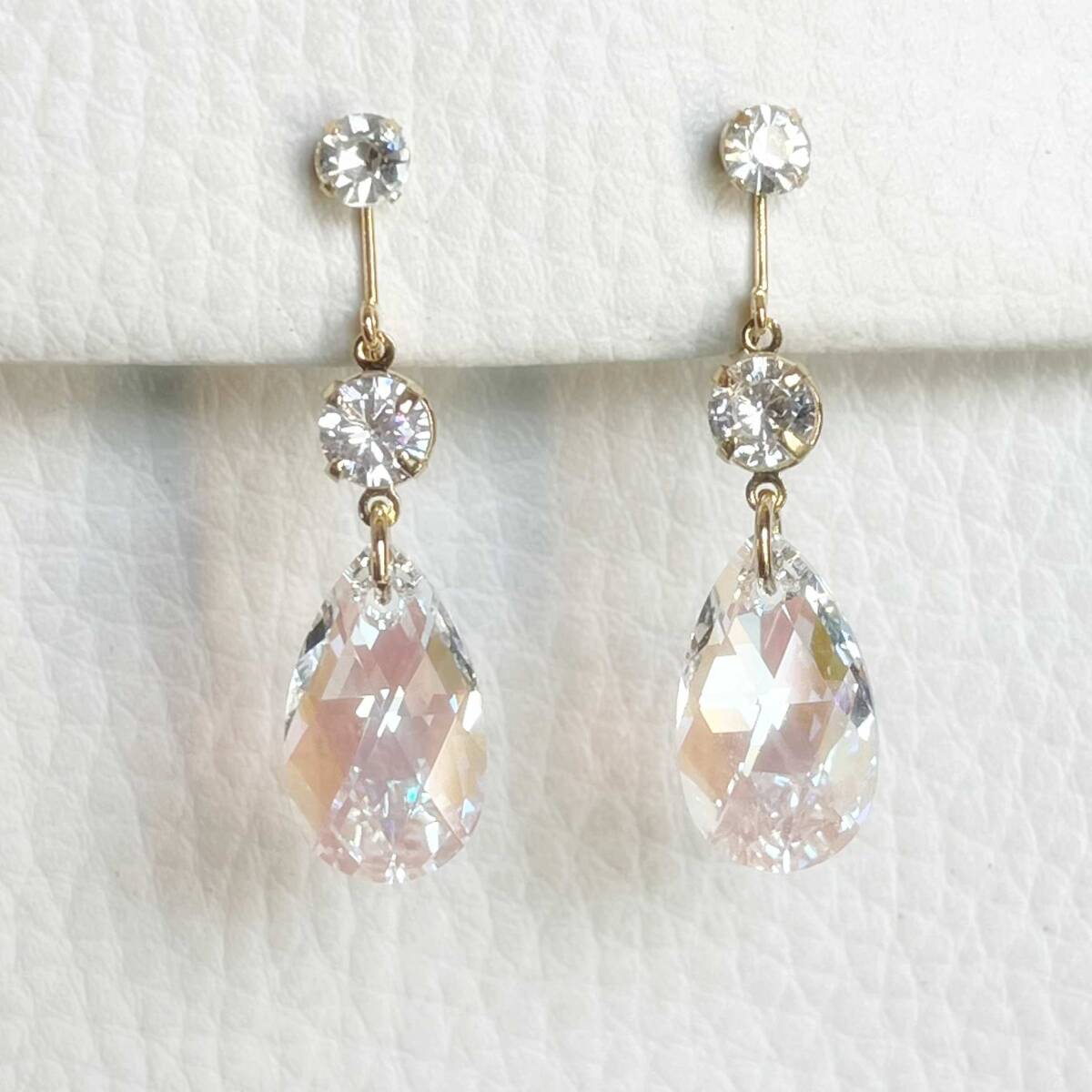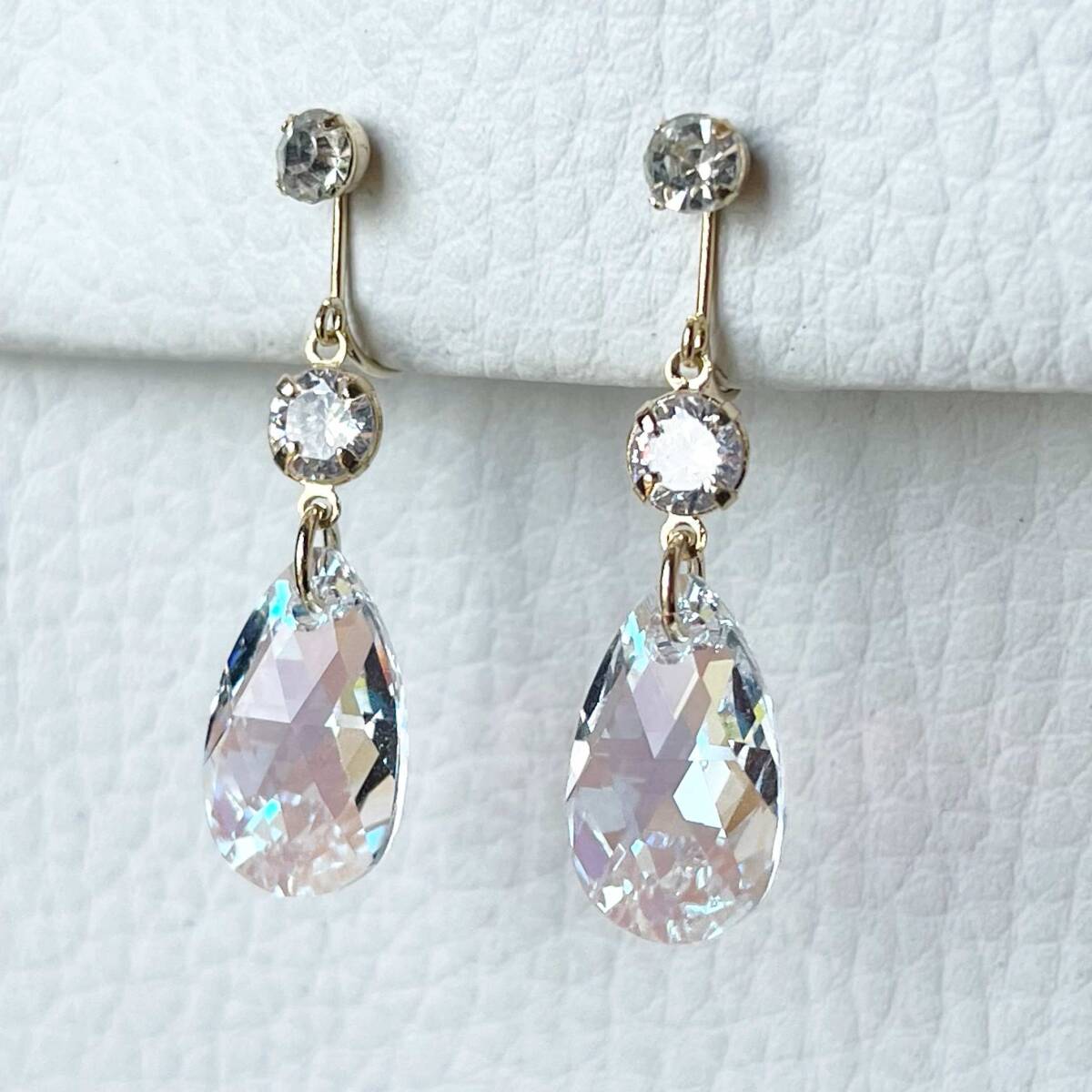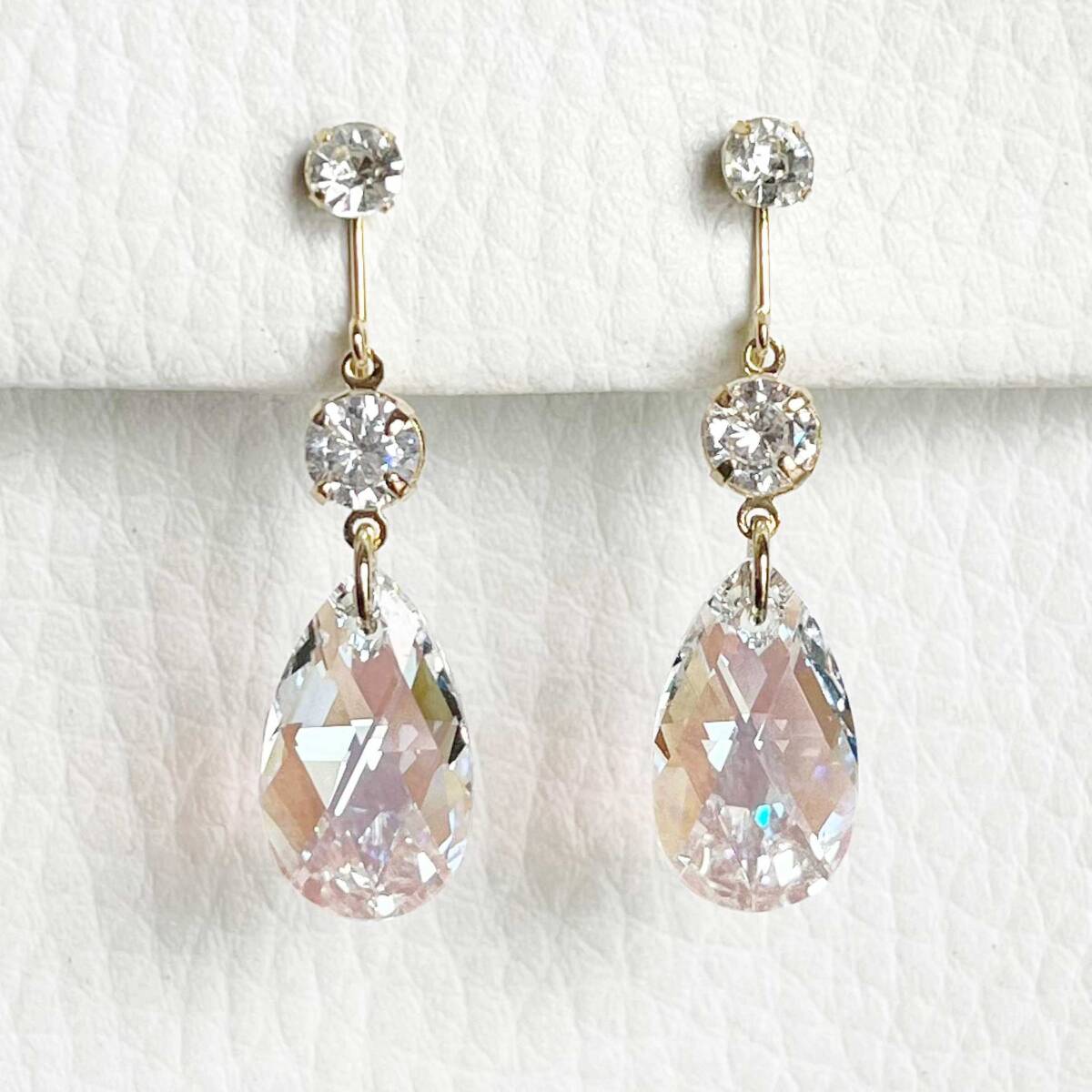 少し大きめの雫型スワロフスキークリスタルを使ったイヤリング