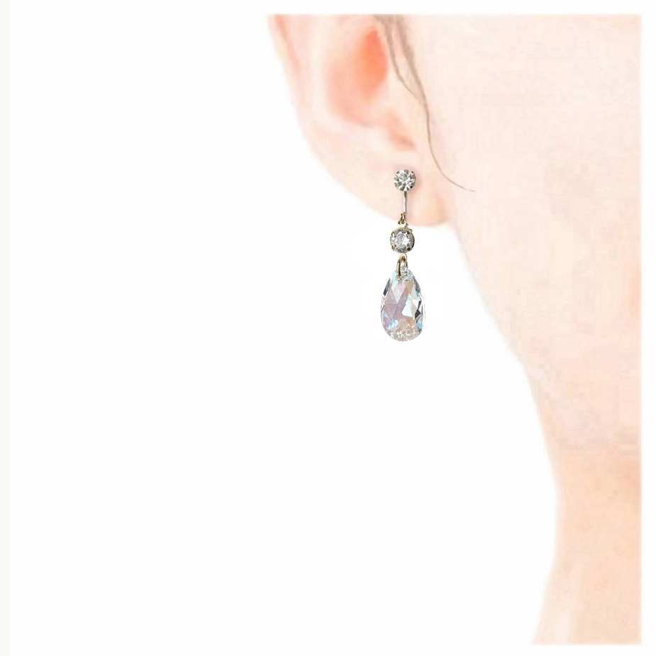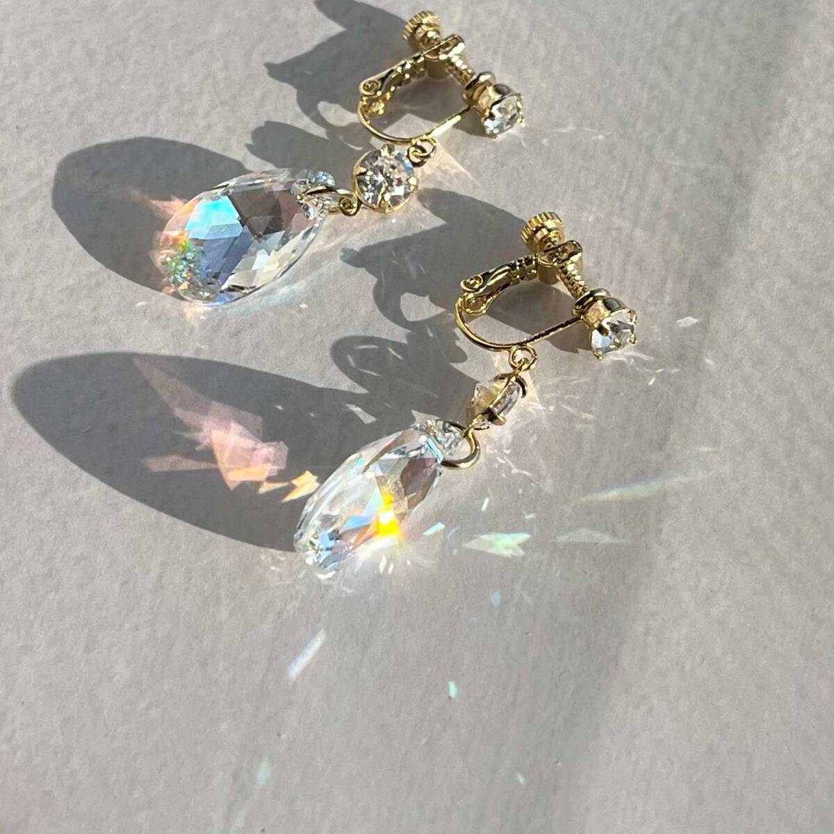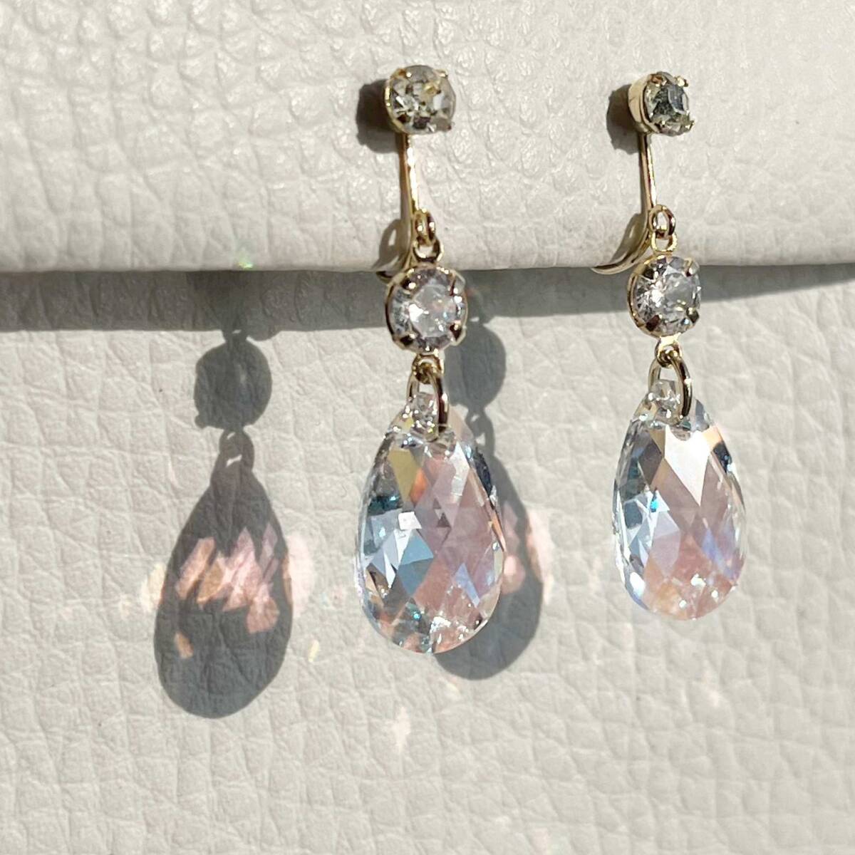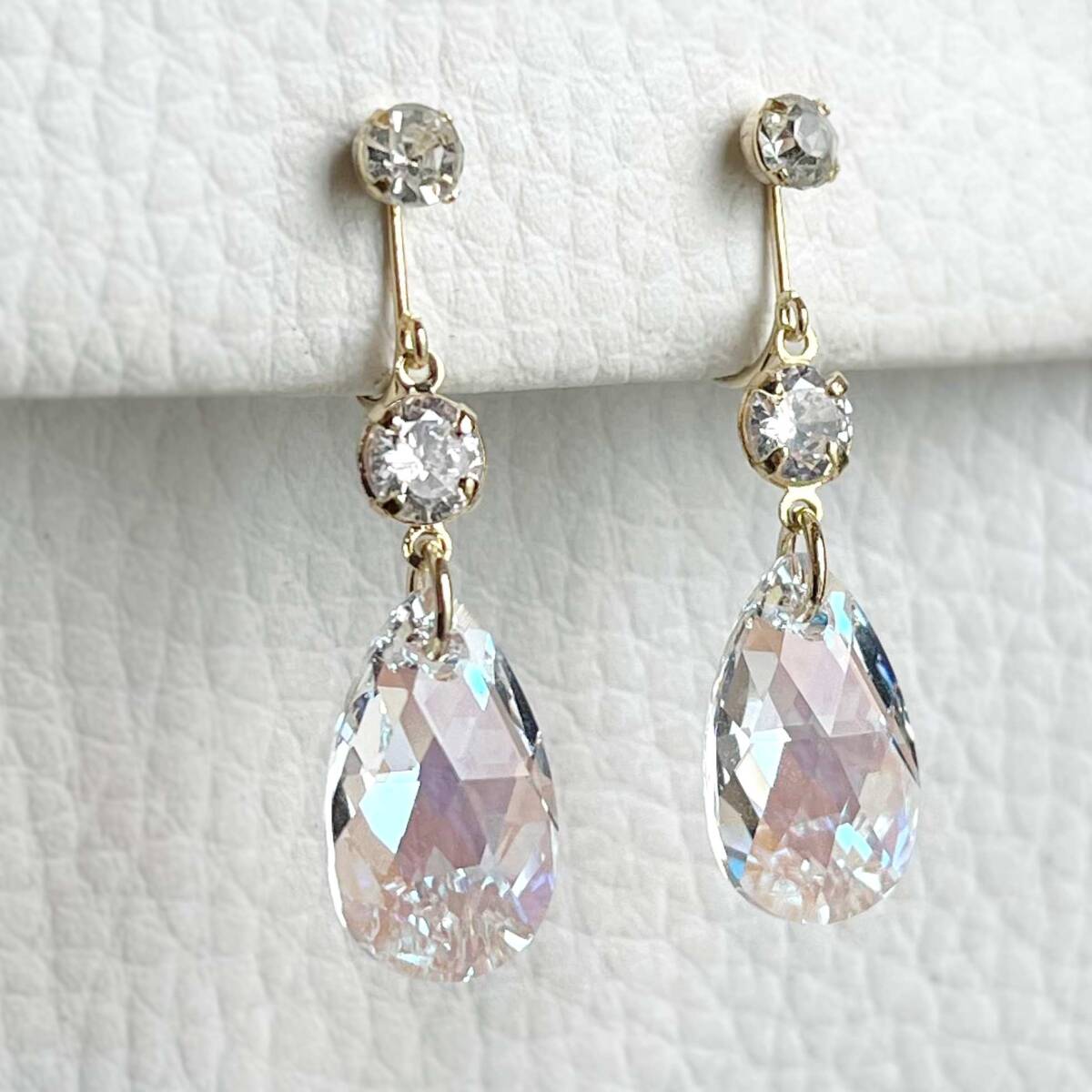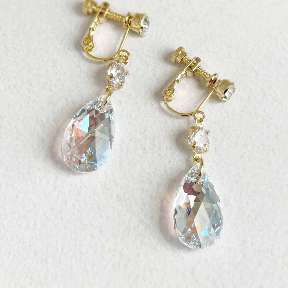 少し大きめの雫型スワロフスキークリスタルを使ったイヤリング
