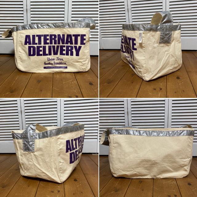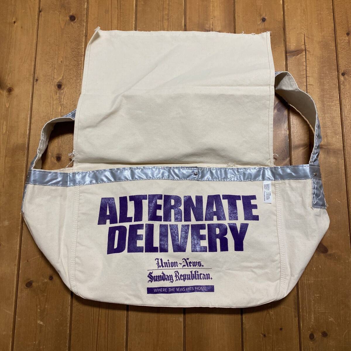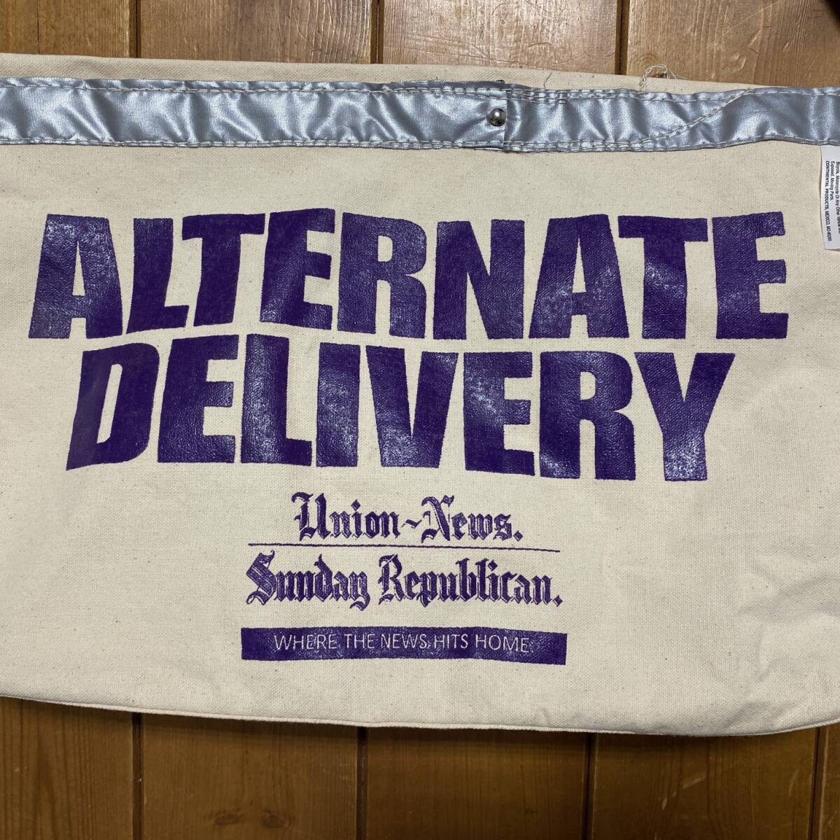 【70~80年代にアメリカのユニオン-ニュースという新聞社の配達員へ支給されていたバッグです。ゴシック体のALTERNATIVE DELIVERYに、オールドイングリッシュフォントのUnion-Newsのプリントが雰囲気のあるニュースペーパーバッグです。ショルダーにはクッション入りでフラップ付き、バッグ上部とショルダーにはシルバーのリフレクターです。中々デッドストックでは出てこないと思います。お探しの方、是非…!】