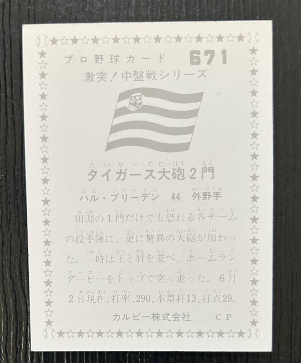 *稀少&当時品*カルビー1976年度版カード "激突!中盤戦シリーズ" #671 ハル・ブリーデン