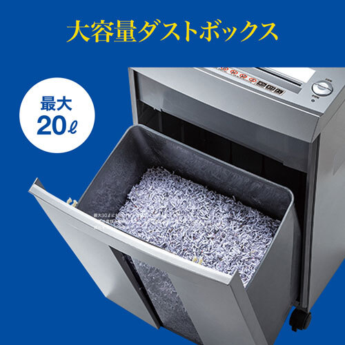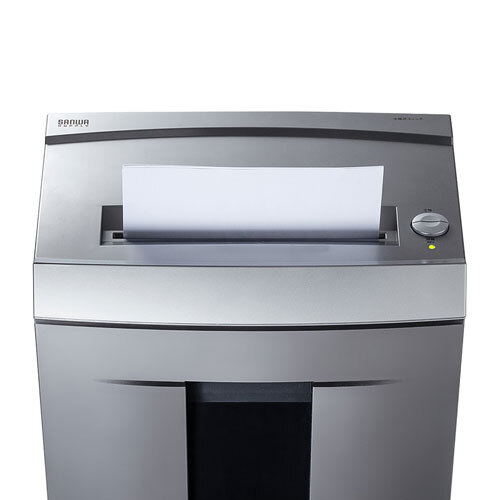 ※配送の送り主はサンワサプライ(株)と記載されています。沖縄・離島配送不可となります。 当店は正規販売代理店です。 特長 用紙の細断形状は、セキュリティ性の高い2×12mmマイクロカットです。細かく細断されるので復元されにくく、ゴミ箱からの情報漏洩を防ぐことができます。 A4コピー用紙最大11枚とDVD又はCD、クレジットカード1枚が細断できます。 40分連続運転可能なので、時間を空けることなく大量の書類を一気に処理できます。 オートスタート/ストップモード機能搭載です。投入口に紙が投入されると自動的に細断を開始し、終了すると自動的に停止します。 紙詰まりによるモーターの焼き付けを防止するオートカットオフ機能を搭載しています。 紙詰まり時に紙を取り出せる逆回転スイッチが付いています。 ダストボックスは約20リットルの大容量なので、大量の書類を細断してもしっかり受け止め、ゴミ捨て回数を減らすことができます。 ホッチキスの芯を付けたままでもシュレッダーをかけることができます。 メーカー保証期間365日 ※当店発注日からになります。 気をつけておりますが、タイミングによっては在庫切れの場合があります。 仕様