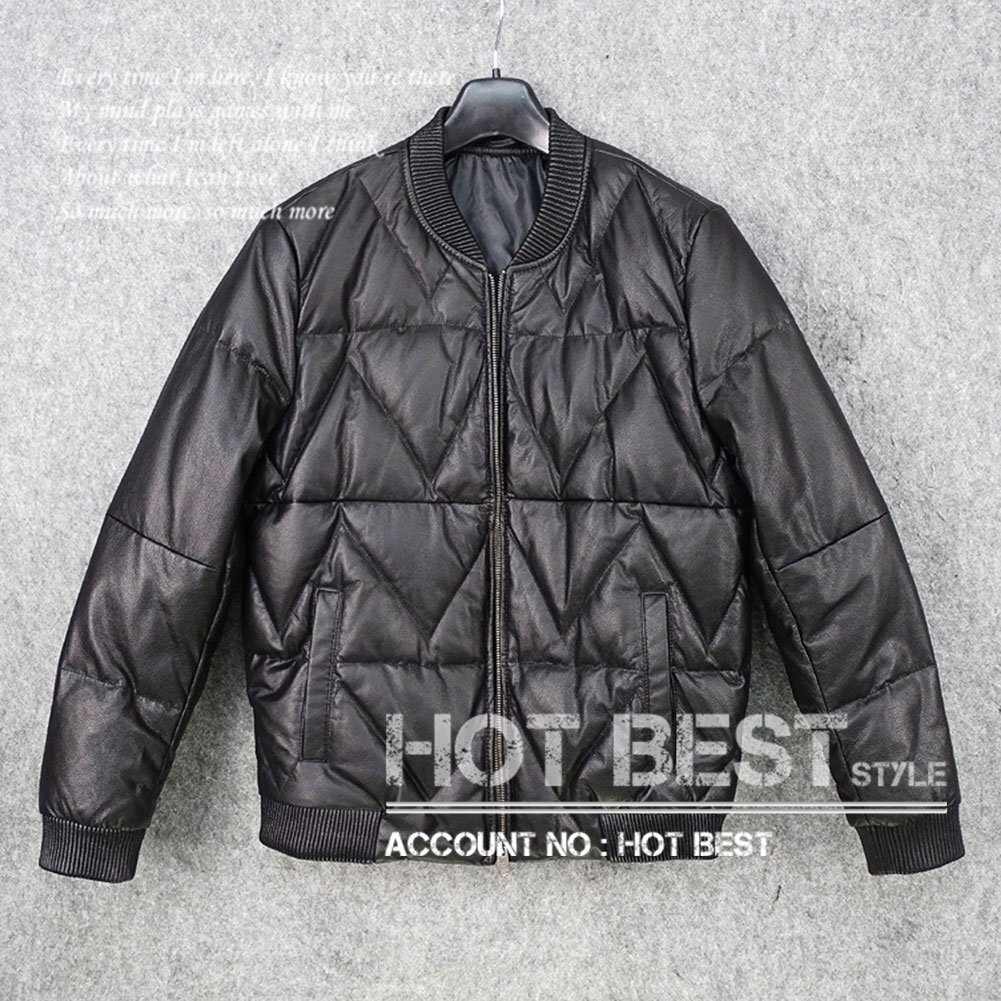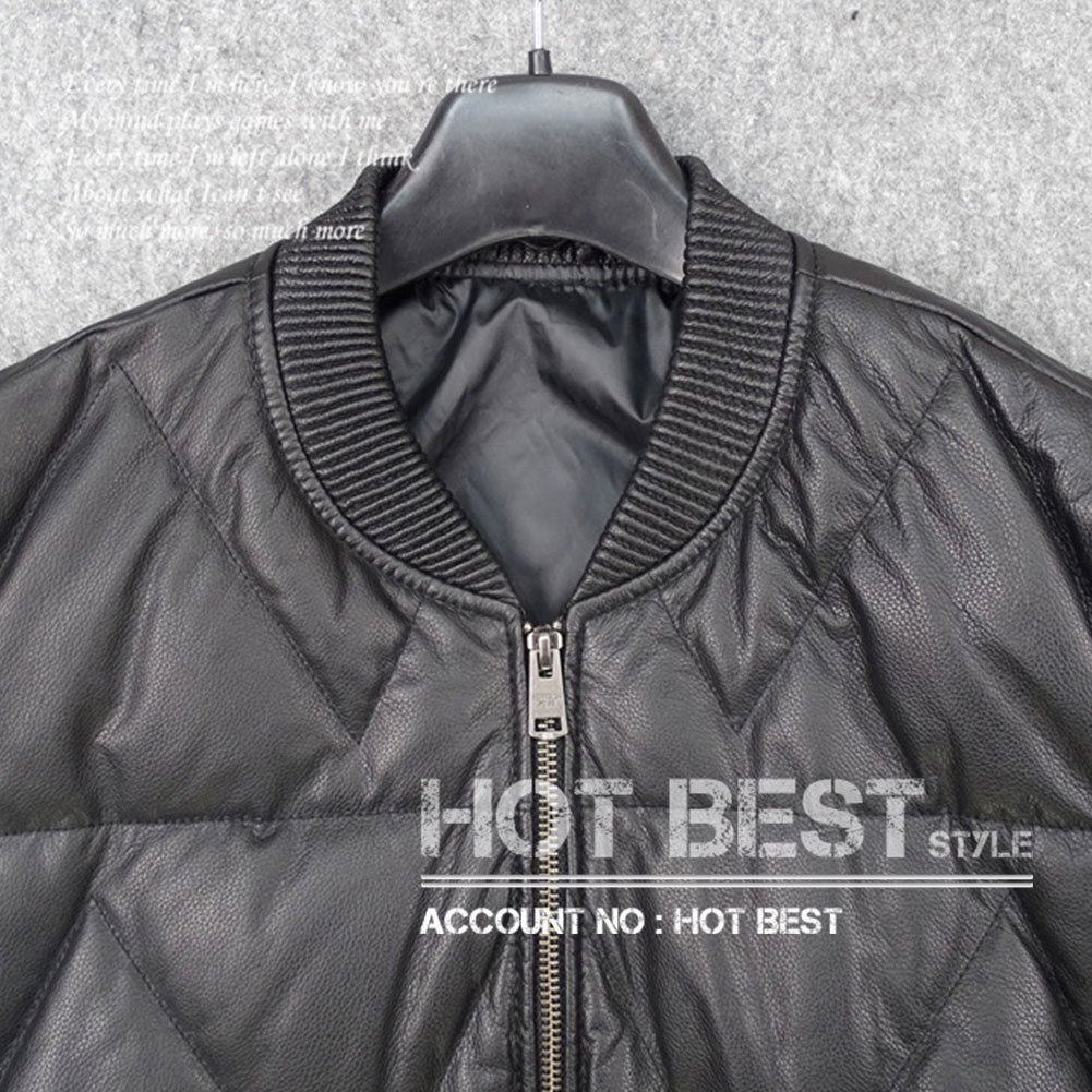 最上級 カウハイド MA-1タイプ タイト レザーダウンジャケット ボマーボンバー フライト イタリアンレザー ラム 牛革【表記L→S程度】CBY657
