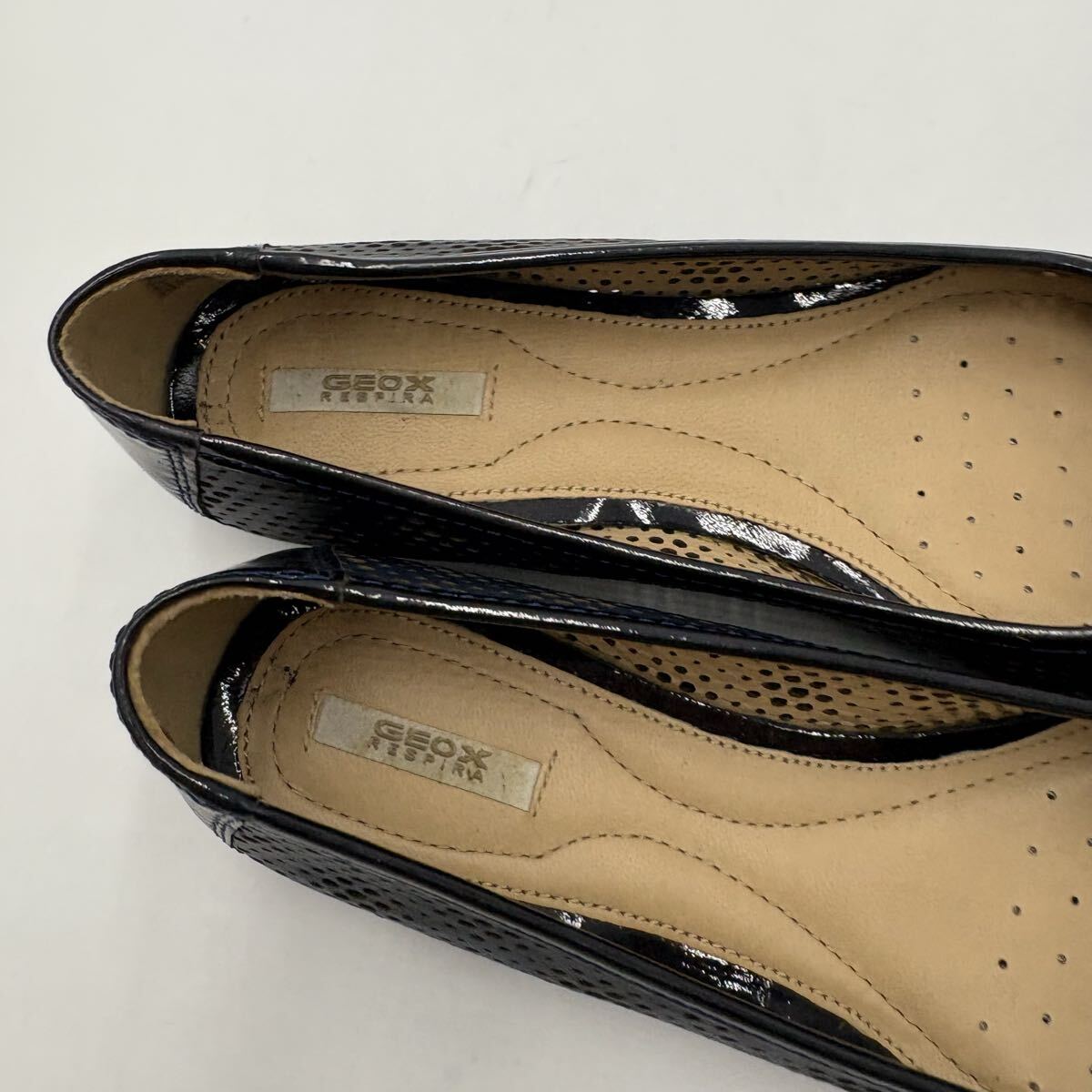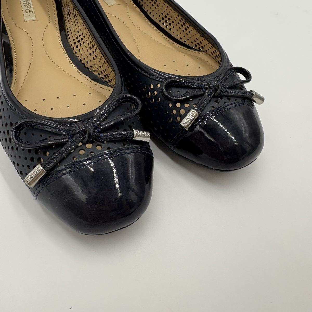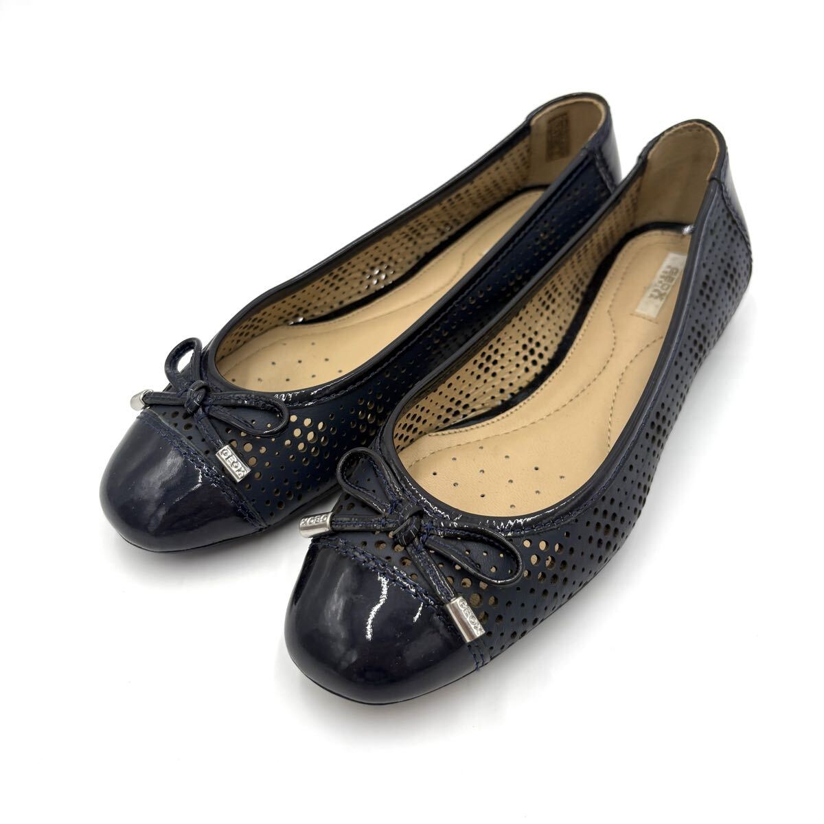 O ■ 洗練されたデザイン!! '履き心地抜群' GEOX RESPIRA ジェオックス LEATHER メッシュ フラット パンプス US4.5 21.5cm 婦人靴 シューズ