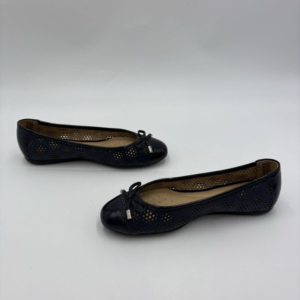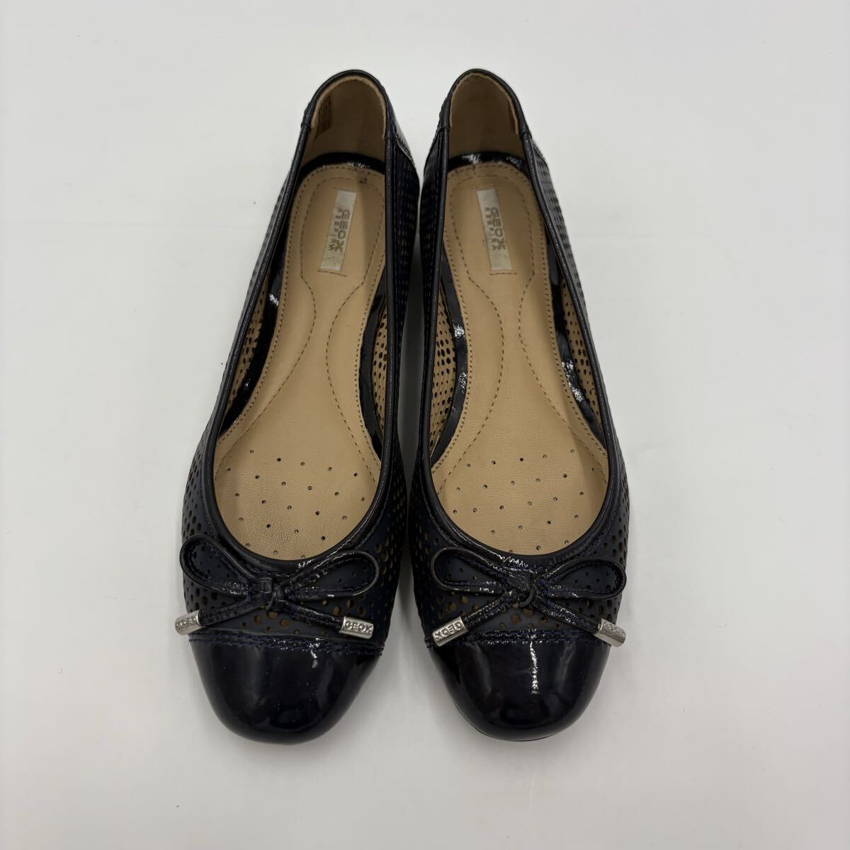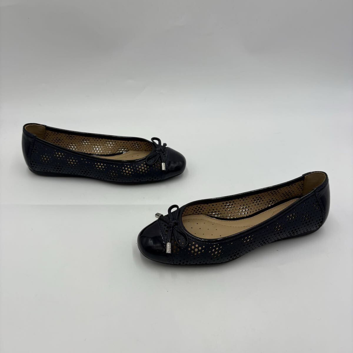 O ■ 洗練されたデザイン!! '履き心地抜群' GEOX RESPIRA ジェオックス LEATHER メッシュ フラット パンプス US4.5 21.5cm 婦人靴 シューズ