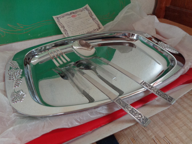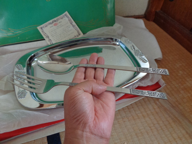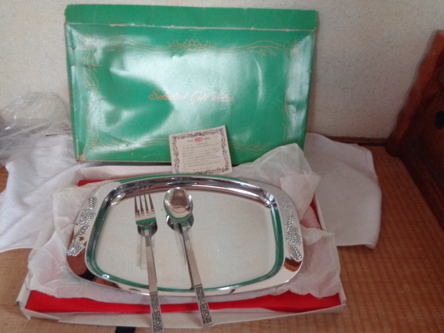 金属洋食器/コーセイの金属洋食器/KOSEI ステンレススチール製 トレー型プレート&スプーン&フォーク/高生株式会社/未使用美品-長期保管品