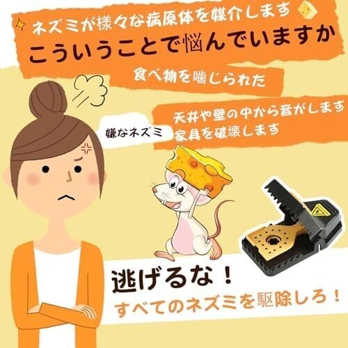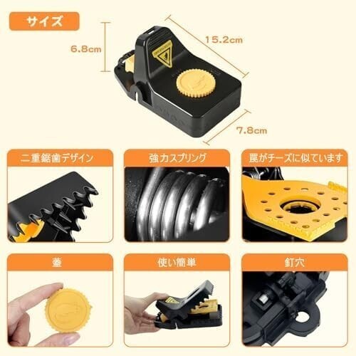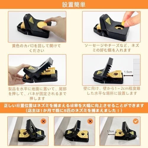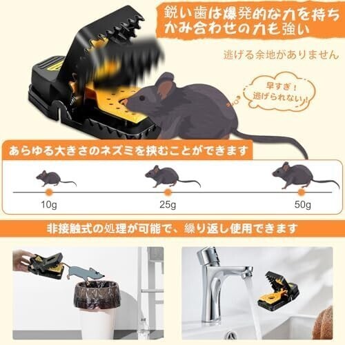 ネズミ捕り器 高感度 バネ式 再利用可能 簡単設置 無毒無害 高い捕獲率 日本語取扱説明書付き (1) 商品詳細 効果的な捕獲システム:高感度のトリガーメカニズムを採用しており、ネズミが餌に触れるとすぐに作動します。