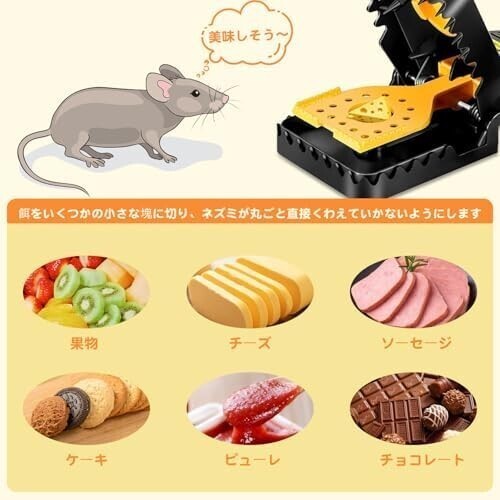 チーズやバターなど、ネズミの好む食べ物を小さくカットして使用することで、捕獲の成功率が高まります。