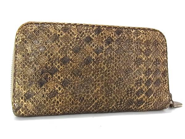 1円 ■極上■本物■ BOTTEGA VENETA ボッテガヴェネタ イントレチャート アイヤーズ パイソン 長財布 ウォレット ブラウン系 FU1062