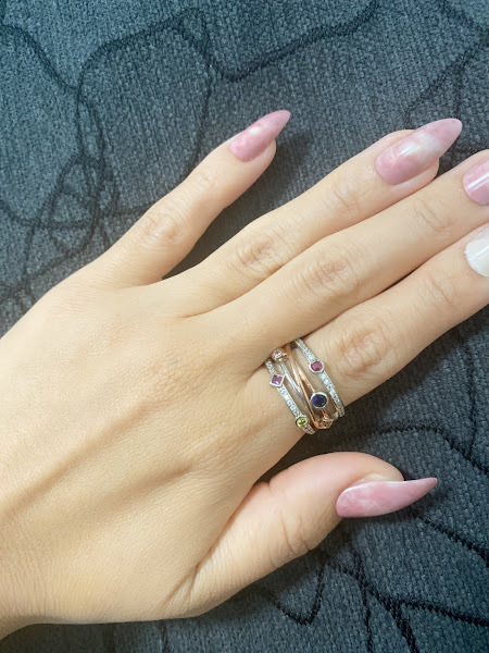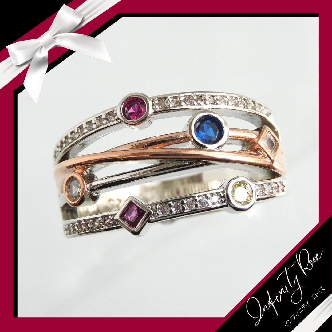 #ピンクゴールドとシルバー丸カラフルワイドリング