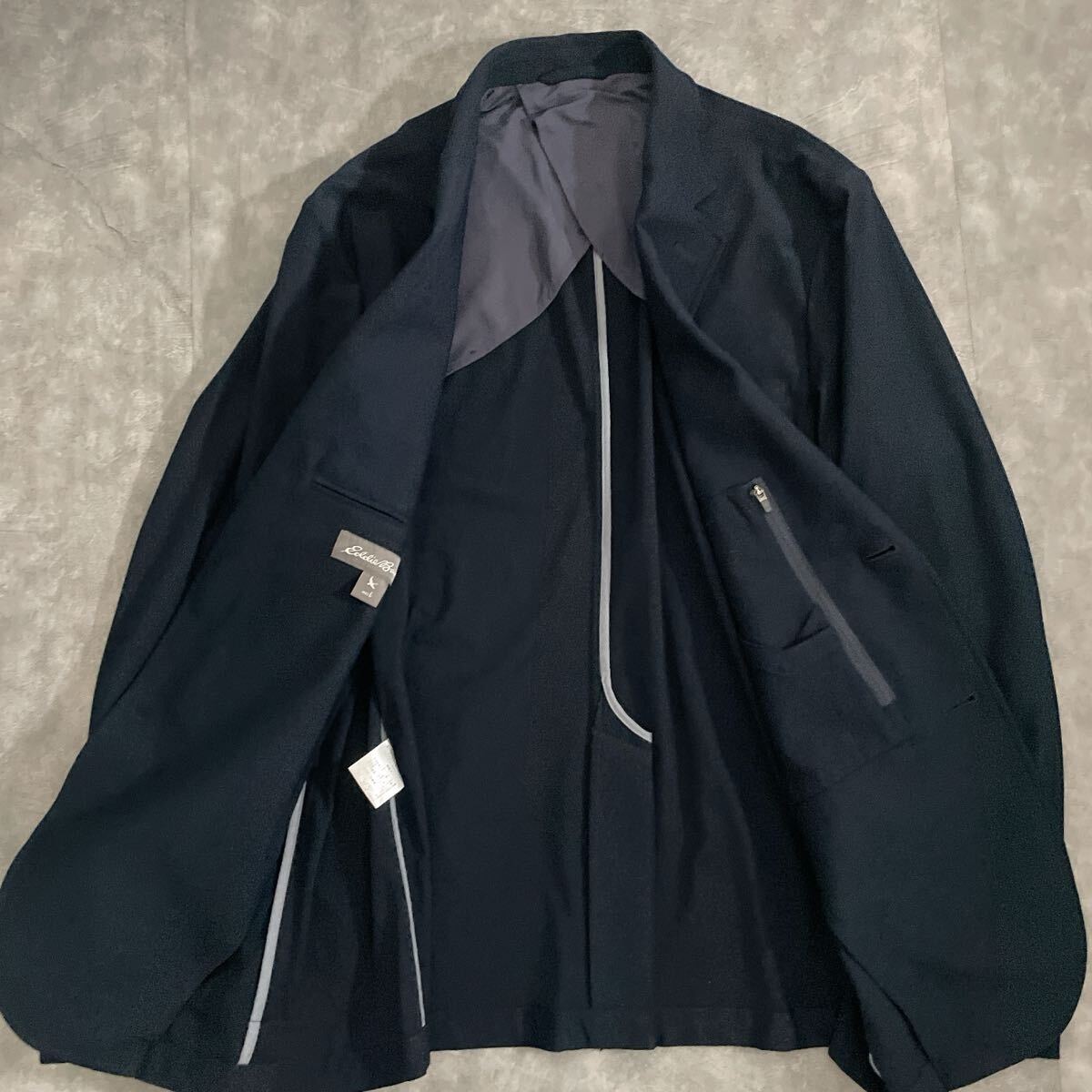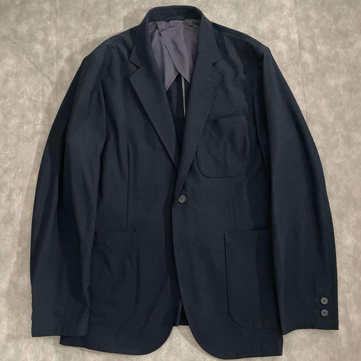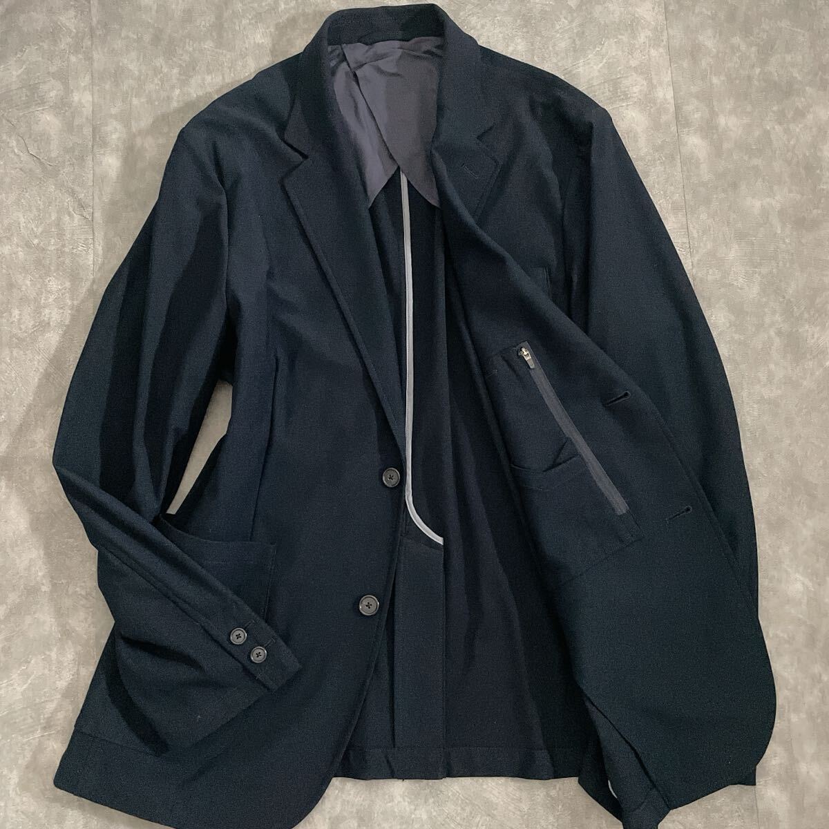未使用級の極美品。着心地の軽い1枚仕立て・アンコン仕様で、堅苦しさなく快適に羽織れるジャケットです。パワーストレッチ素材を使用しており、伸縮性に優れアクティブなシーンでもストレスフリー。
