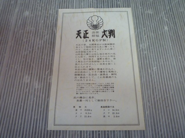 | 商品名 | ◆JA-10911-45 レプリカ品 天正大判 開運 招福 24KGP 木箱入り |