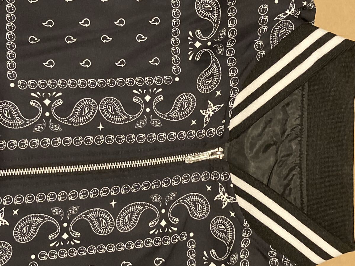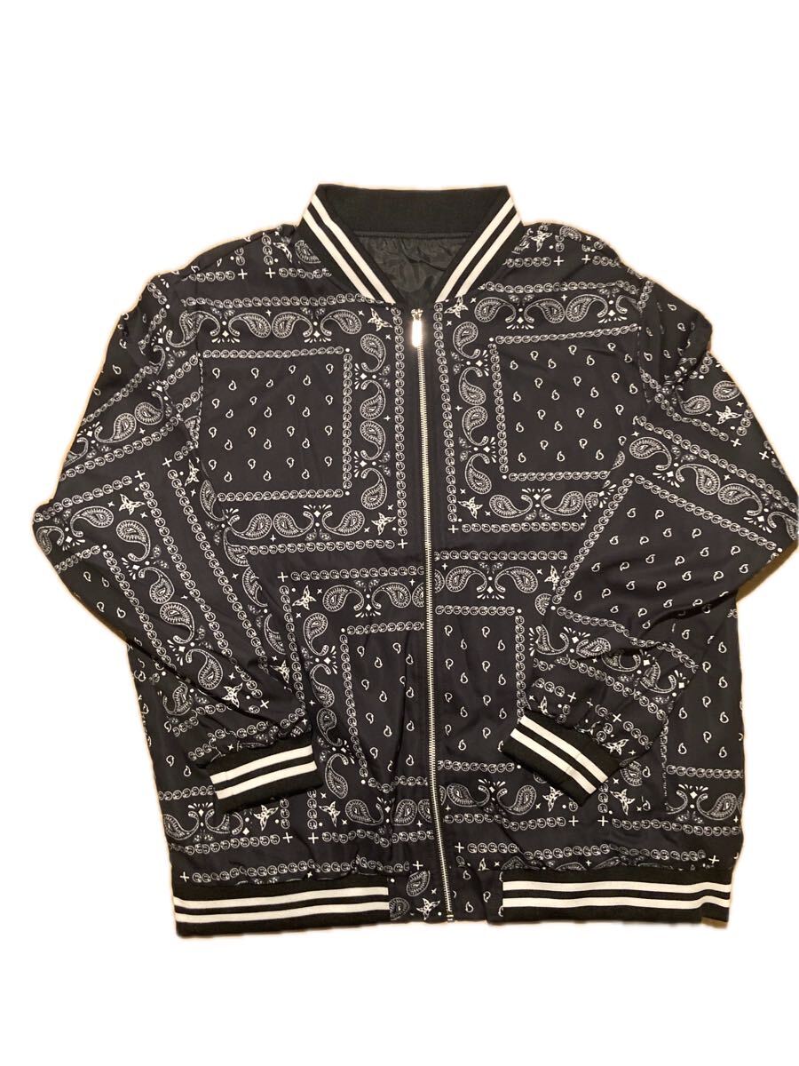 新品 ペイズリー ジップアップ ジャケット ブラック XXL ローライダー チカーノ ヒップホップ 総柄 ブルゾン