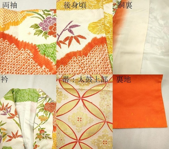 【祝着】 身丈 156cm(肩から) 裄丈 61.5cm(肩上げ 0cm) 袖丈 66cm 縫込み 2.5cm 袖幅 31.5cm 前幅 19.5cm 後幅 26.5cm 着物縫いこみ 内揚げ 0cm (腰上げ 0cm) 裄 お袖側 約2cm 身頃側 約3cm 【帯】 長さ 404cm 幅 26cm程 《 サイズについてはこちら 》 |