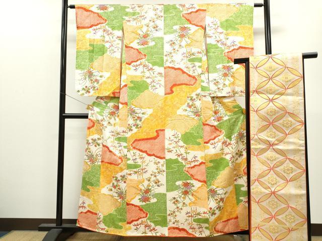 着物【正絹】の状態は接写画像のように両袖・後身頃・胴裏・衿山に薄い汚れがございますが その他特に目立ったシミ汚れなどもなく大変良い状態です。 全通柄袋帯【交織・芯なし】の状態は接写画像のように太鼓上部・裏地に薄い汚れがございますが その他特に目立ったシミ汚れなどもなく大変良い状態です。 大変上質な逸品になります。 お安く出品致しますので、是非この機会にいかがでしょうか? ※こちらの商品は一般的な十三参りの着物より丈が長いので お客様ご自身でお仕立てをしてご着用下さい。 |