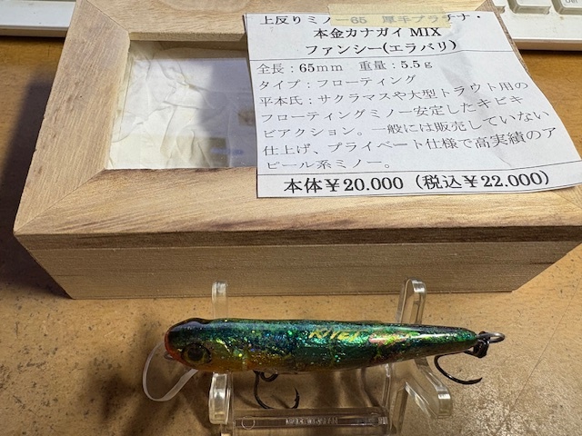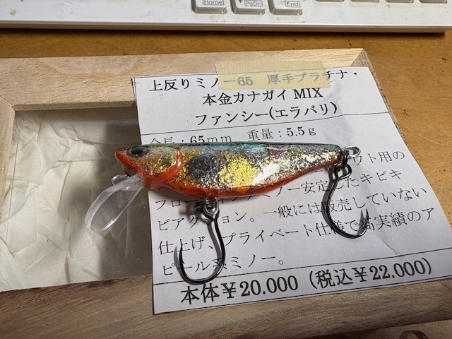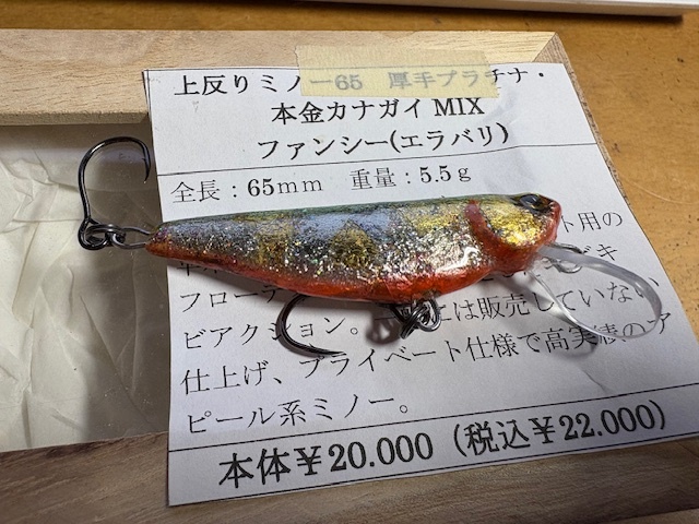 リベット ミノーミノー 65mm 厚手プラチナ・本金カナガイMIXファンシー(えらバリ)珍品 未使用品です。使用機会がないので出品します。きず等は、ないと思いますが写真で判断してください。ノークレームでお願いします。色は、写真で判断してください。