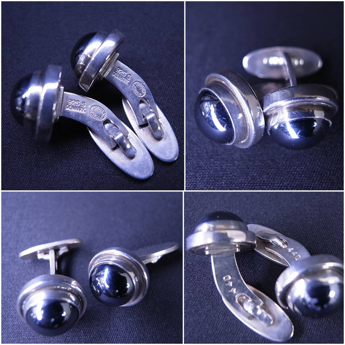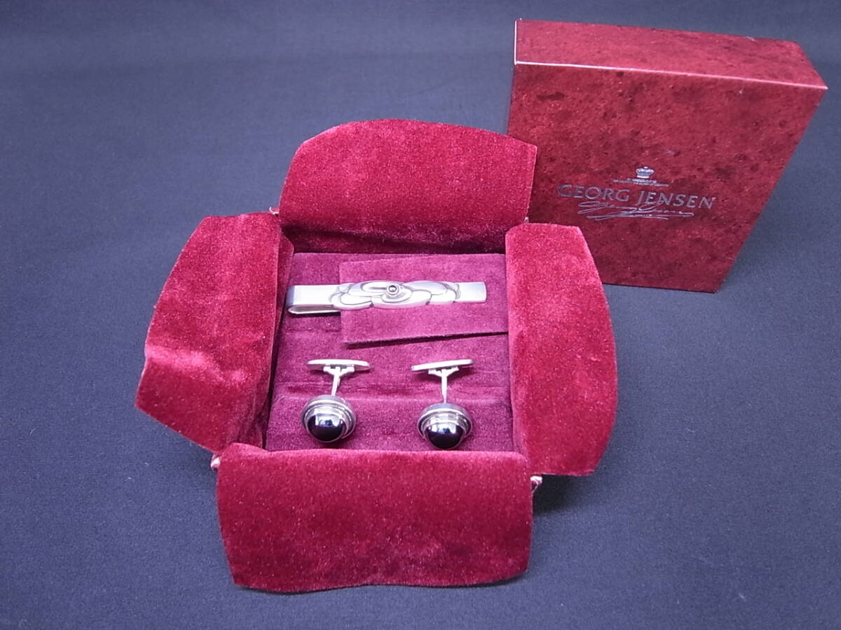 ★☆GEORG JENSEN ジョージジェンセン SV925 ヘマタイト カフリンクス44D & タイピン404 セット ヴィンテージ デンマーク 箱付き☆★