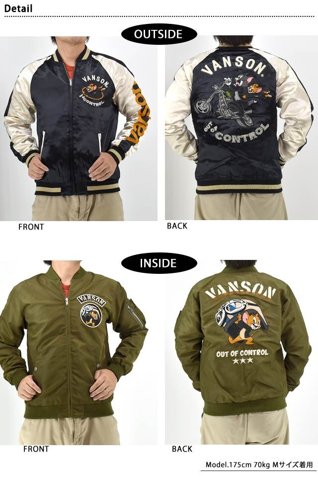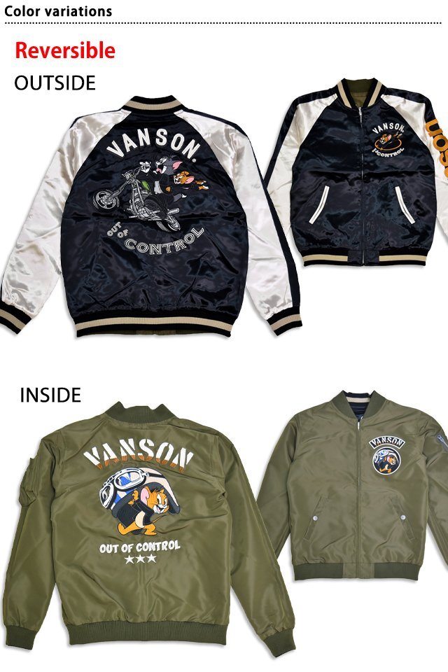| TOM&JERRYコラボ サテン×ナイロンツイル リバーシブルスカジャン◆vanson VSN-M02403 | ||||||||||||||||||||