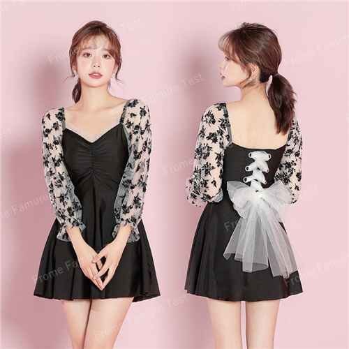 スカート水着 水着ワンピース レディース 体型カバー キレイめ 夏 おしゃれ L ブラック
