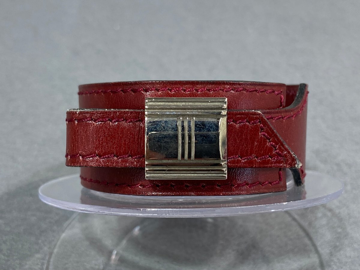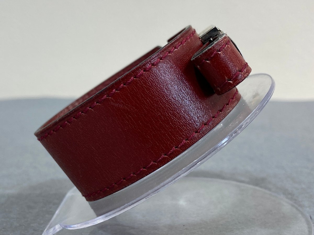 【HERMES】 エルメス ブレスレット バングル 《アルテミス》 ワインレッド系カラー レザー 革 服飾小物 SY02-GMA