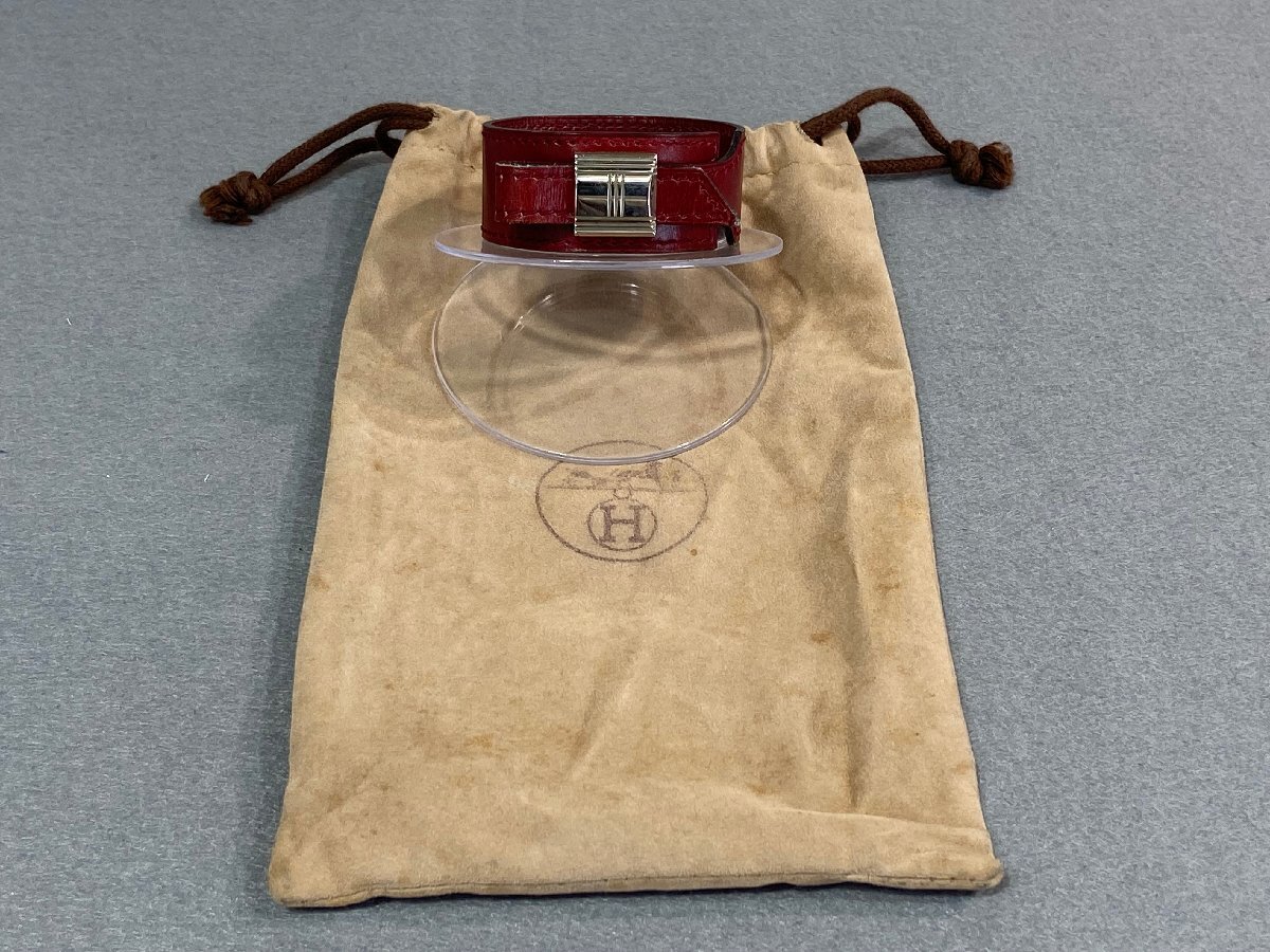 【HERMES】 エルメス ブレスレット バングル 《アルテミス》 ワインレッド系カラー レザー 革 服飾小物 SY02-GMA◎